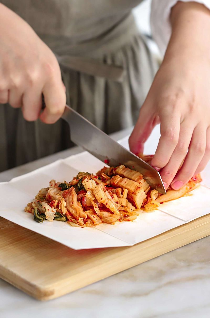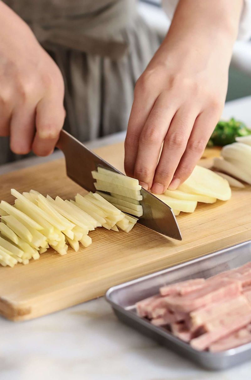 📝TIP 1. 감자는 굵게 썰면 익히는 데 시간이 걸릴 수 있으니, 적당히 얇은 크기로 썰어주세요. 📝TIP 2. 김치는 묵은지로 해주시면 더 깊은 맛과 감칠맛이 난답니다. 📝TIP 3. 김치 썰 때 다 먹고 씻어서 말린 우유팩을 밑에 깔고 썰어주시면, 도마에 김치 물이 들지 않는답니다.