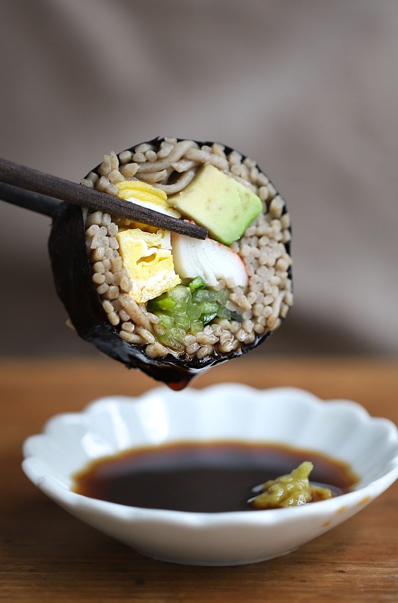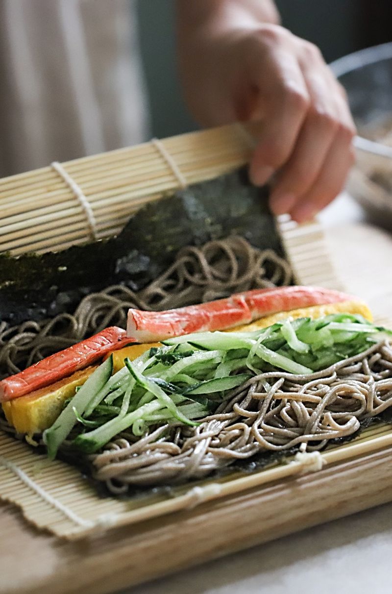 🥢밥 대신 메밀 국수 넣고 돌돌 말아주세요!