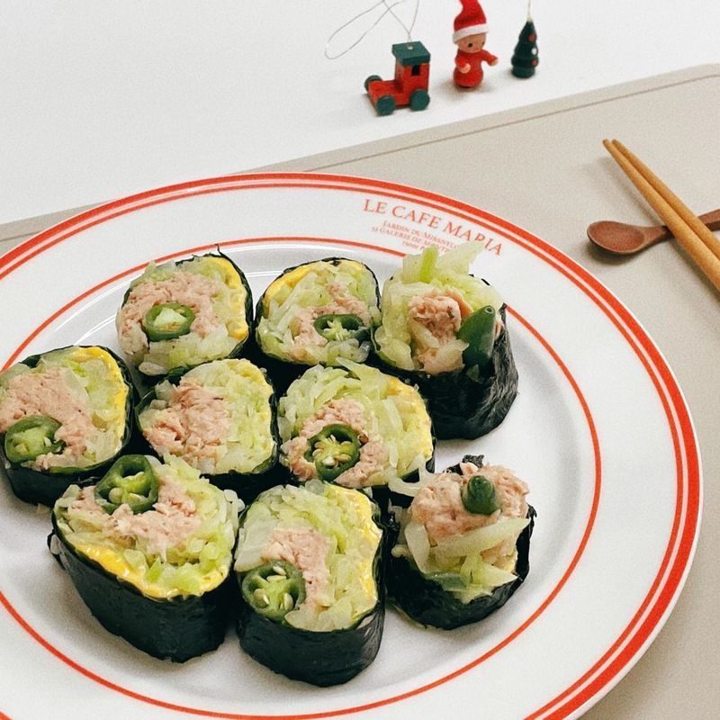 혹시 다이어트 중이라 스팸을 넣기 좀 그런가요? 그렇다면 밥과 스팸대신 양배추와 참치를 넣어주세요. 청양 마요 소스 덕분에 맛은 유지하면서 죄책감 없이 즐길 수 있답니다.