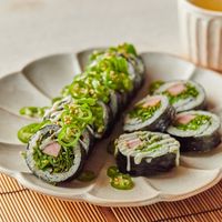 여름의 계절과 딱 어울리는 김밥이죠. 밥 대신 저칼로리 메밀 국수를 넣은 메밀 김밥! 면이 들어가 독특한 식감과 깔끔한 맛이 특징이에요. 특히 메밀은 몸의 열을 내려주고 성인병을 막아준다고 하니, 더운 여름날 이보다 더 먹기 좋은 김밥은 없겠죠? 🔪메밀김밥 예쁘게 잘 써는 TIP! 메밀 국수를 삶은 후 물기를 최대한 빼주고, 칼로 썰기 전에 칼날 양면에 참기름을 발라주세요. 그러면 모양이 흐트러지지 않고 예쁘게 잘 썰려요.