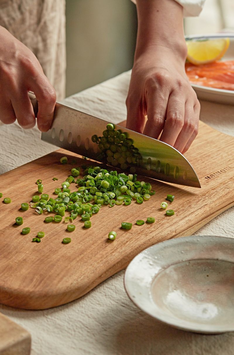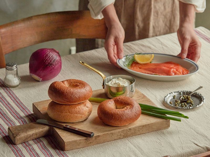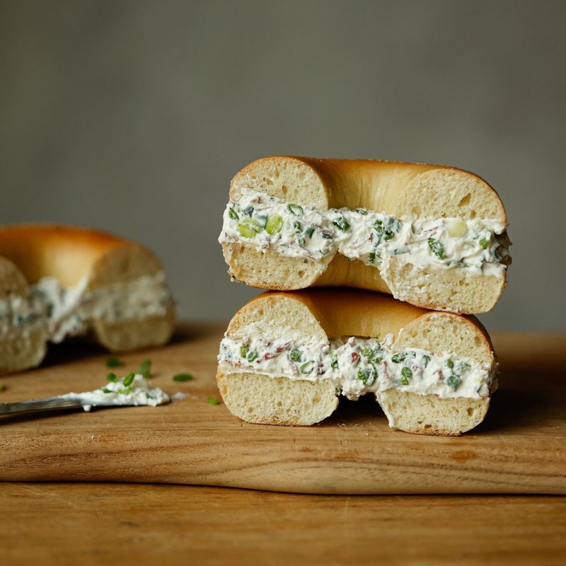 베이글에 부드러운 크림치즈와 연어를 올려 완성했어요. 고소한 크림치즈 안에 쪽파와 양파를 넣으면 중간중간 개운하게 씹히는 맛이 좋아 느끼하지 않답니다. 📝TIP 1. 쪽파가 없다면 대파를 잘게 잘라 넣어도 충분히 맛있어요. 📝TIP 2. 양파는 5분 정도 찬물에 담가 매운맛을 제거해 주세요.