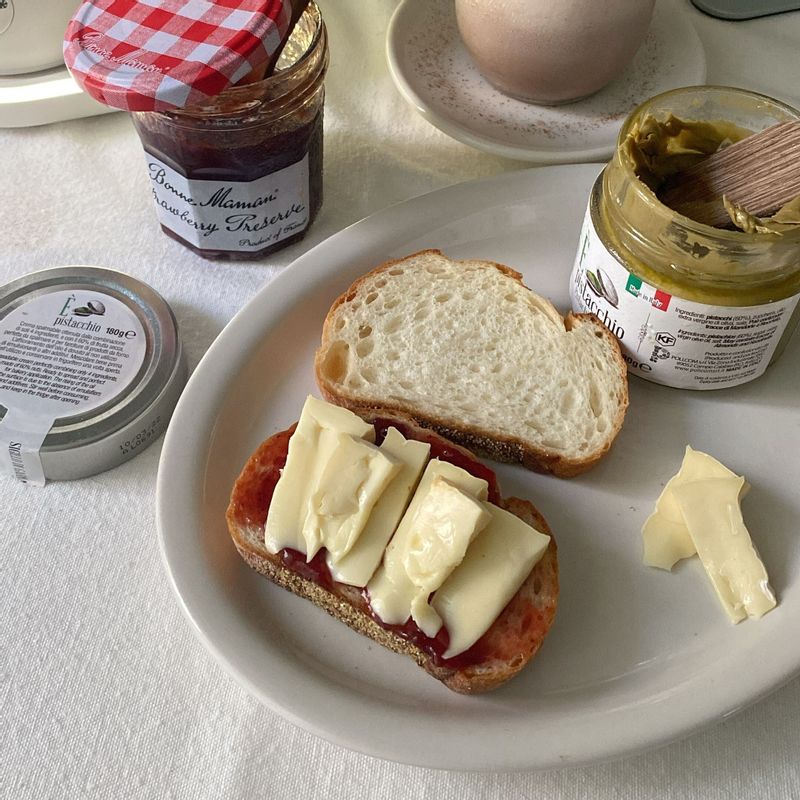 📝TIP 1. 여름 제철 과일인 산딸기로 잼을 직접 만들어 먹으면 더 꿀맛이에요. 📝TIP 2. 딸기잼뿐만 아니라 블루베리잼, 살구잼 등 다양한 과일 잼을 발라먹으며 최상의 조합을 찾아보세요.