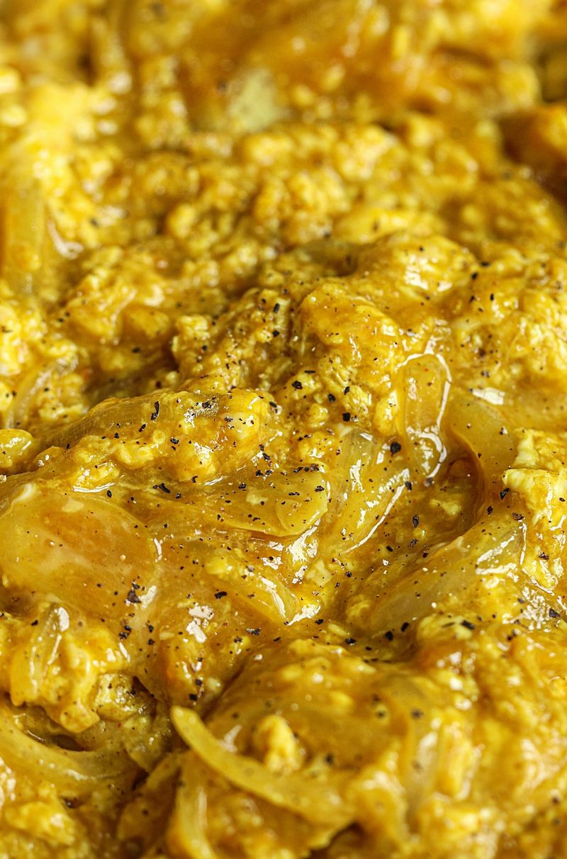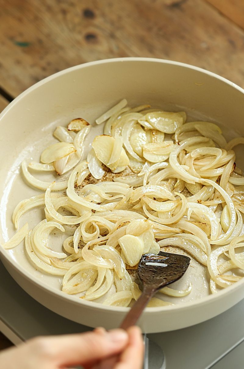📝TIP 1. 마늘과 양파를 충분히 볶지 않으면 매울 수 있어요. 양파가 투명해지고 갈색을 띨 때까지 충분히 익혀주시는 게 좋아요. 📝TIP 2. 양파 대신 잘게 썬 양배추를 볶아 넣어도 잘 어울려요. 📝TIP 3. 조금 느끼하다 싶으신 분들은 케첩을 반 스푼만 넣어보세요. 새콤달콤 풍미가 좋아져요.
