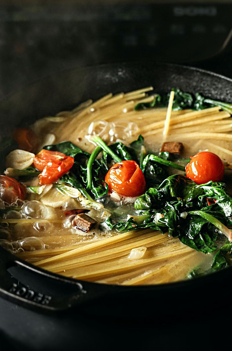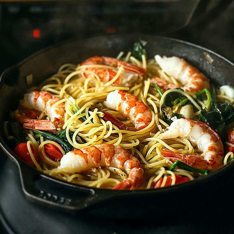 재택근무로 점심 고민하는 직장인들, 아이들 끼니 고민하는 주부님들 주목! 면 삶고 건져내고 번거로운 과정 없이 팬 하나로 끝내는 원팬 파스타 어때요? 오동통한 새우가 들어가 포만감도 좋고, 치킨 스톡으로 감칠맛을 내 남녀노소 누구나 맛있게 먹을 수 있답니다!