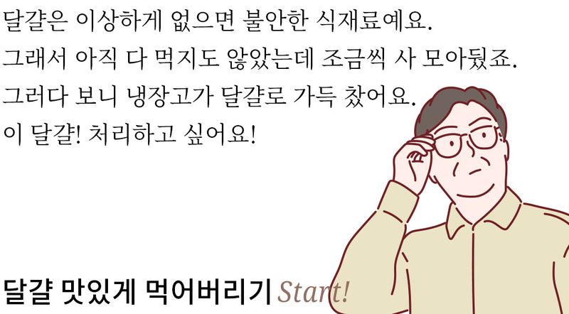 냉장고 says“냉장고에 이미 달걀이 가득 찼어요.그만 사 와요”
