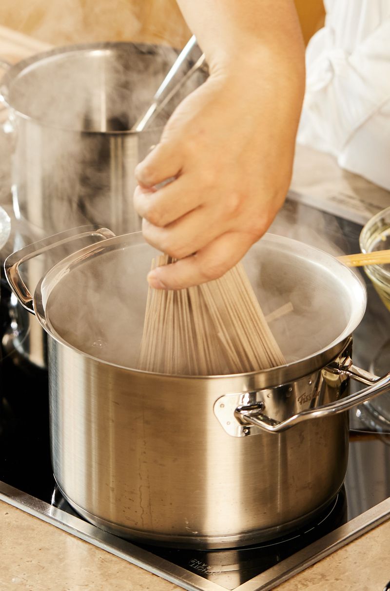 - 역시 면 요리의 핵심은 면을 탱글탱글하게 잘 삶는 것! 불지 않고 맛있는 면을 위한 몇 가지 사소한 팁이 있답니다! 📝TIP 3. 큰 냄비에 물을 넉넉하게 넣고 소바면을 5분 정도 삶아주세요. 📝TIP 4. 다 삶아진 소바면을 찬물에 재빠르게 헹군 후 얼음 물에 담가야 면발이 쫄깃해요.