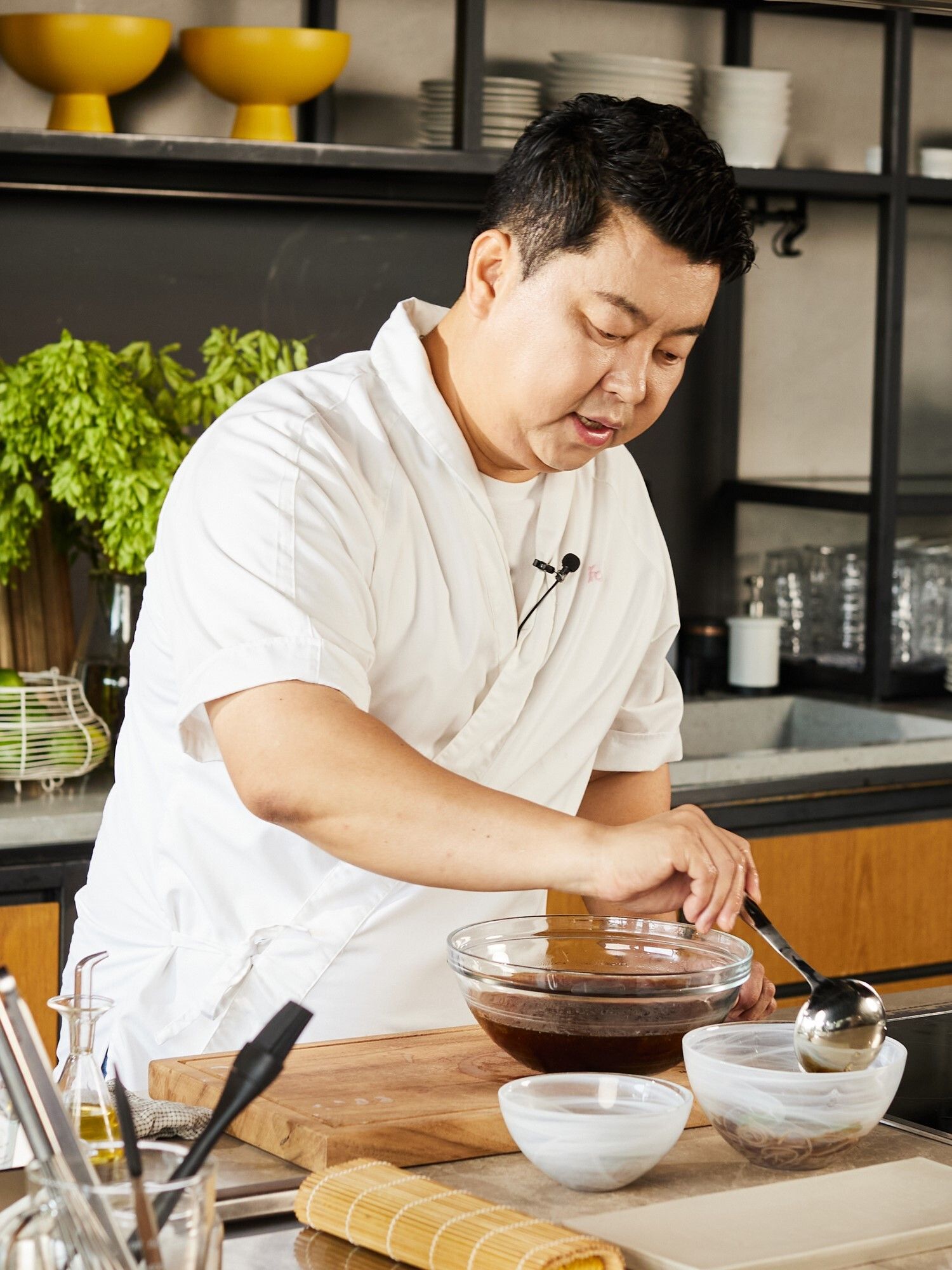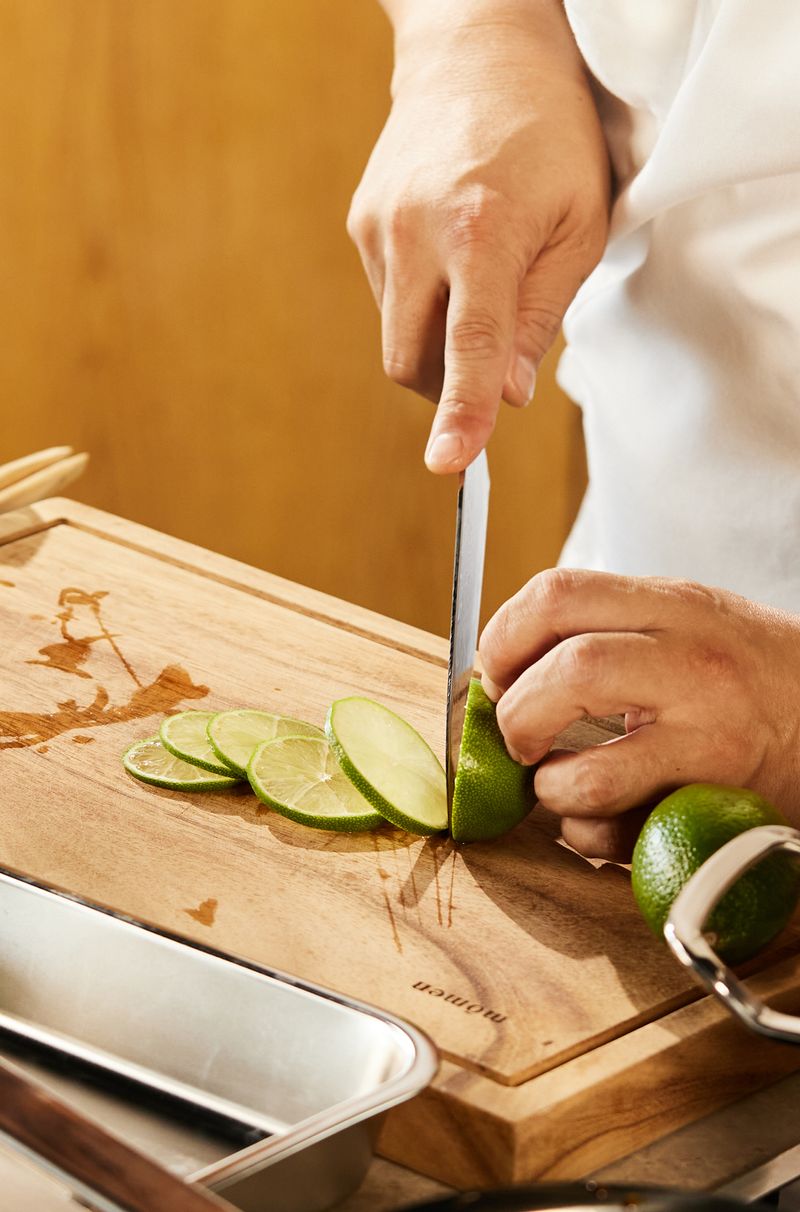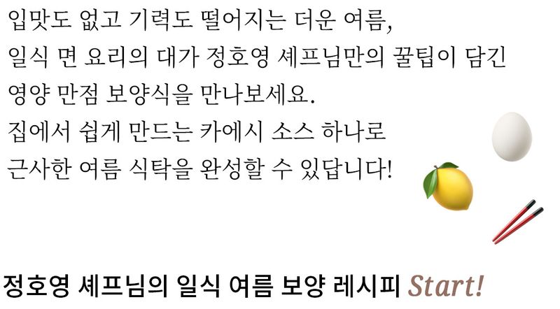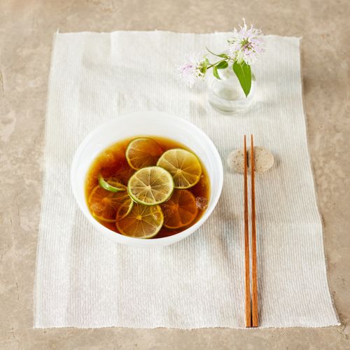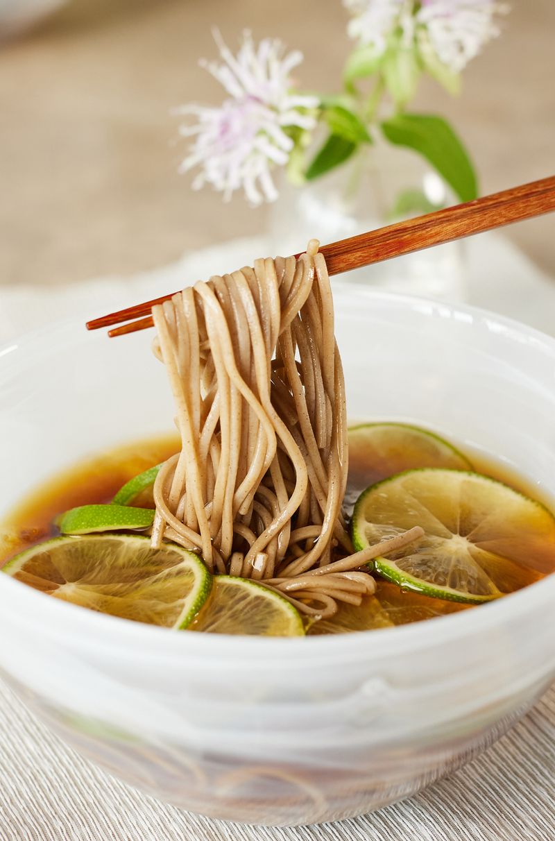 - 차가운 육수에 카에시 소스와 소바면을 넣고, 얇게 썬 라임을 얹기만 하면 완성이에요! 국수나 우동면에도 잘 어울리는 정호영 셰프님만의 메밀 국물 레시피를 다채롭게 활용해 보세요!
