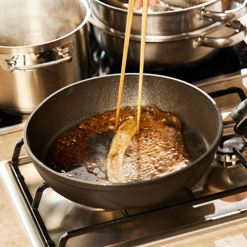 - 장어 위에 데리야끼 소스를 붓고 소스가 골고루 베도록 조리듯이 구우면 장어는 준비 끝!