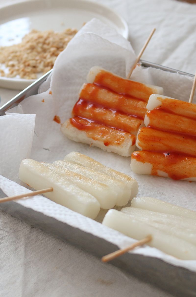 📝TIP 1. 겉바속쫀하게 떡을 굽고 싶다면 팬에 기름을 넉넉히 두른 후 구워주세요. 📝TIP 2. 땅콩 알레르기가 있다면, 참깨를 뿌려 마무리해 주셔도 충분히 맛있어요.