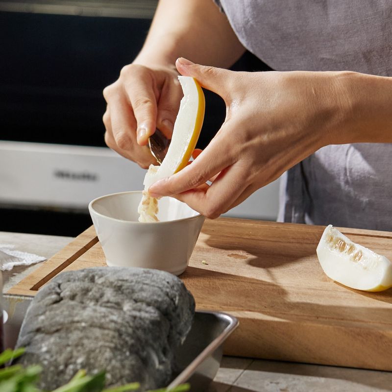 맛과 영양이 가장 좋은 제철 과일과 나물이 만나 여름의 시원 상쾌한 맛이 물씬 느껴지는 토스트! 잘 익은 참외의 단맛과 참나물의 쌉싸름한 맛이 어우러져 자연의 건강함이 배로 느껴지는 요리예요. 📝TIP 1. 참외 씨를 제거할 때는 칼로 부드럽게 긁어내 주면 깔끔하고 간단해요.