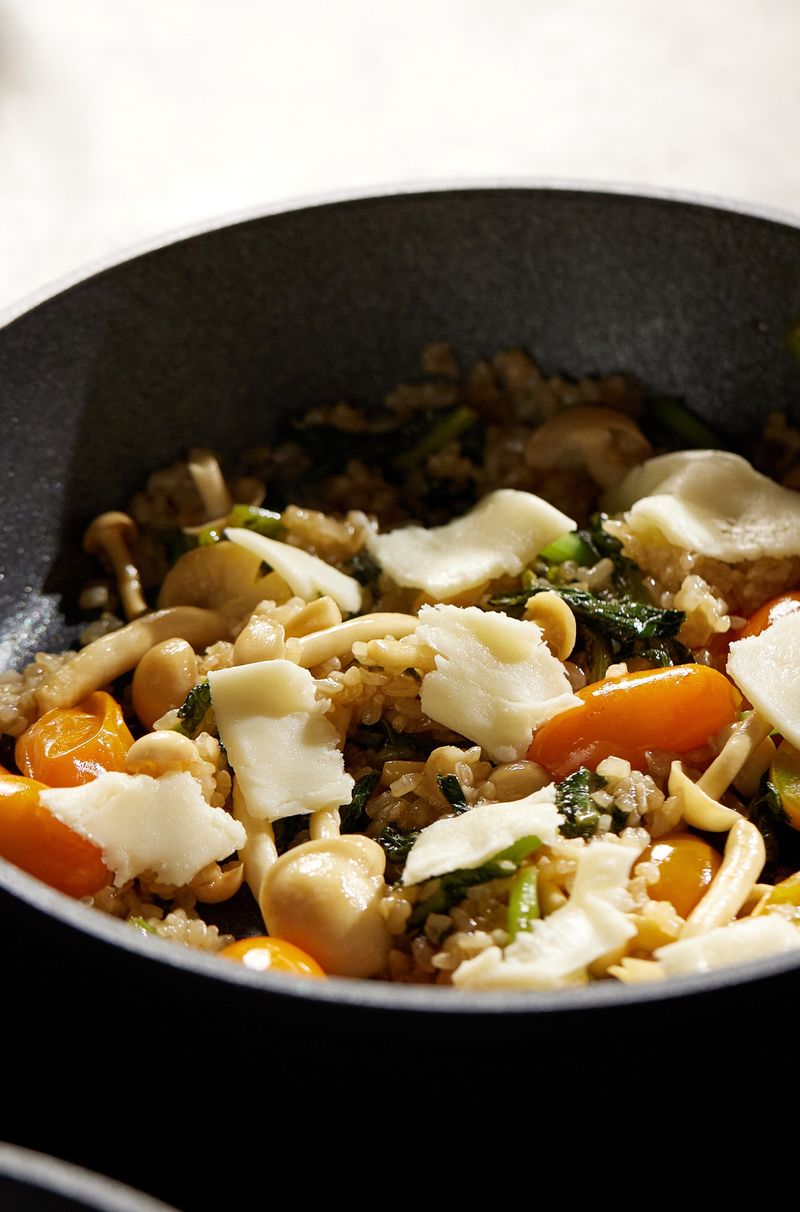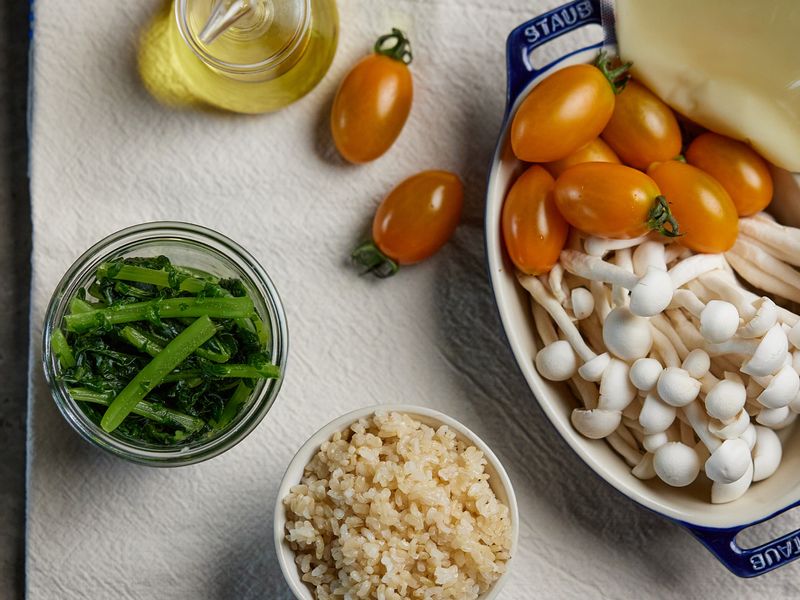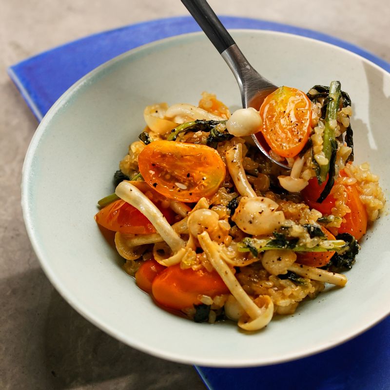 방울토마토와 열무백김치, 그리고 버섯의 싱그러운 만남! 맛과 식감 모두 훌륭해 아침부터 기분이 좋아지는 요리예요. 최소한의 양념만을 더해 재료들의 본연의 맛을 최대로 살리는 것이 포인트랍니다.
