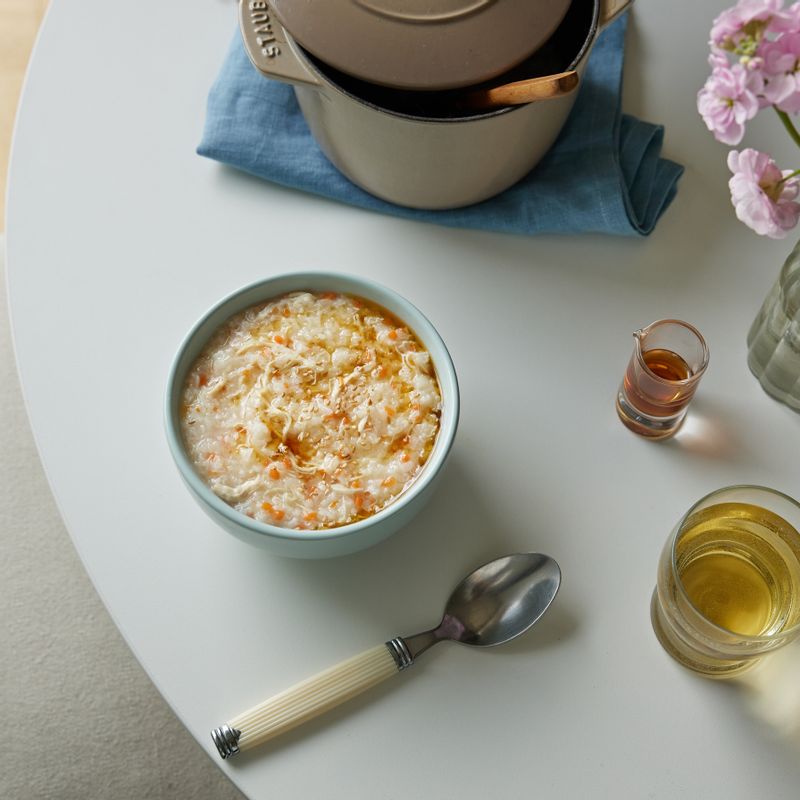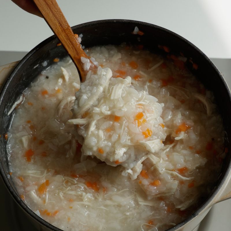 기름기가 적은 닭가슴살을 이용해 담백하고 속을 편안하게 해주는 닭죽으로 기운 나는 하루를 보내보세요. 📝TIP 1. 닭가슴살을 삶기 번거롭다면, 삶을 필요 없는 시판용 닭가슴살로 만들어도 괜찮아요. 📝TIP 2. 양념할 때 소금 대신 치킨스톡을 넣어주면 감칠맛이 훨씬 좋아요.
