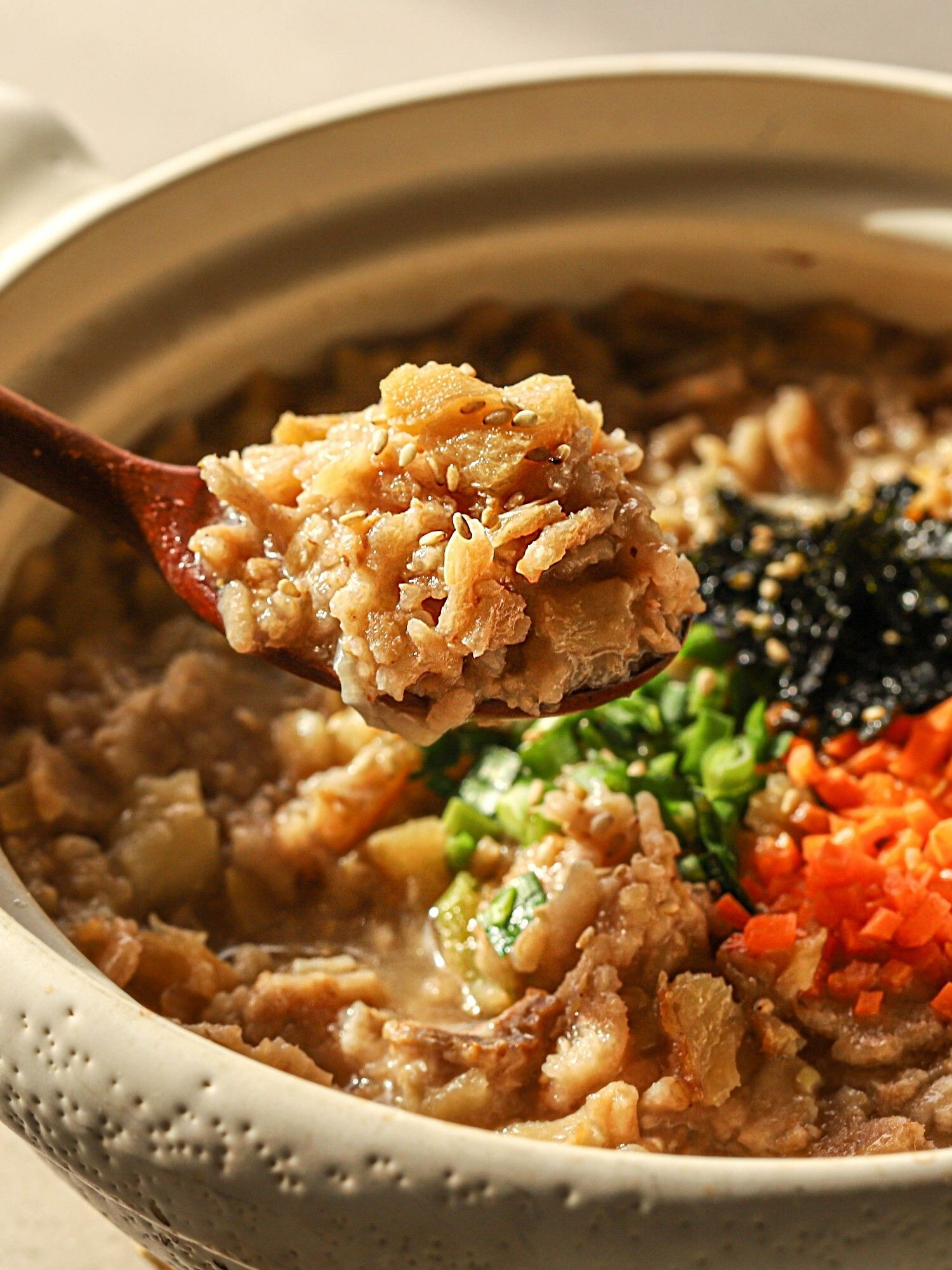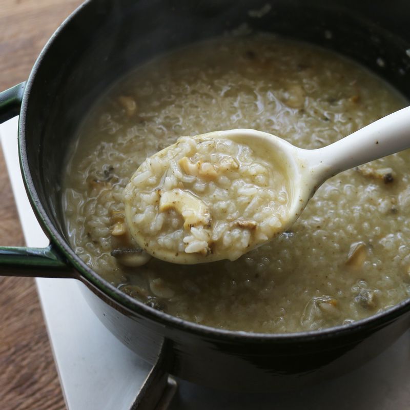 기운 없을 때 속을 뜨끈뜨끈하게 달래줘 몸도 마음도 든든하답니다. 📝TIP 1. 누룽지가 없다면 일반 쌀을 불려 만들어도 좋아요. 하지만 구수한 맛을 위해 누룽지로 만드는 것을 추천드려요. 📝TIP 2. 더 부드럽고 즐기고 싶다면 마지막에 달걀 하나를 풀어 뭉근하게 끓여주세요.