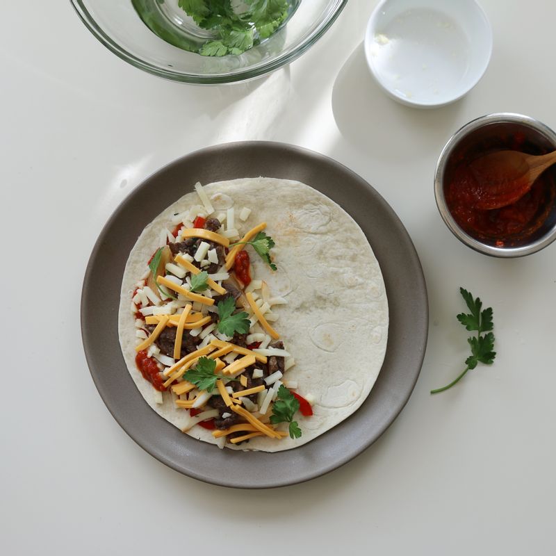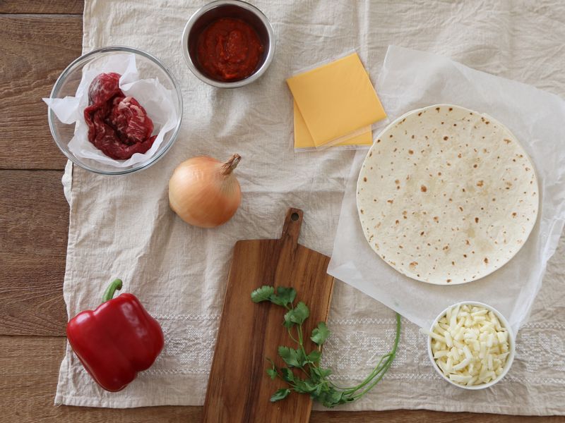 퀘사디아는 토르티야 속 재료를 넣어 구워낸 멕시코 요리예요. 소시지, 돼지고기, 소고기, 새우 등 다양한 재료를 넣어 만들지만 이번엔 불고기를 넣어 볼 거예요. 치즈, 채소 등과 불고기의 조합이 굉장히 잘 어울린답니다.