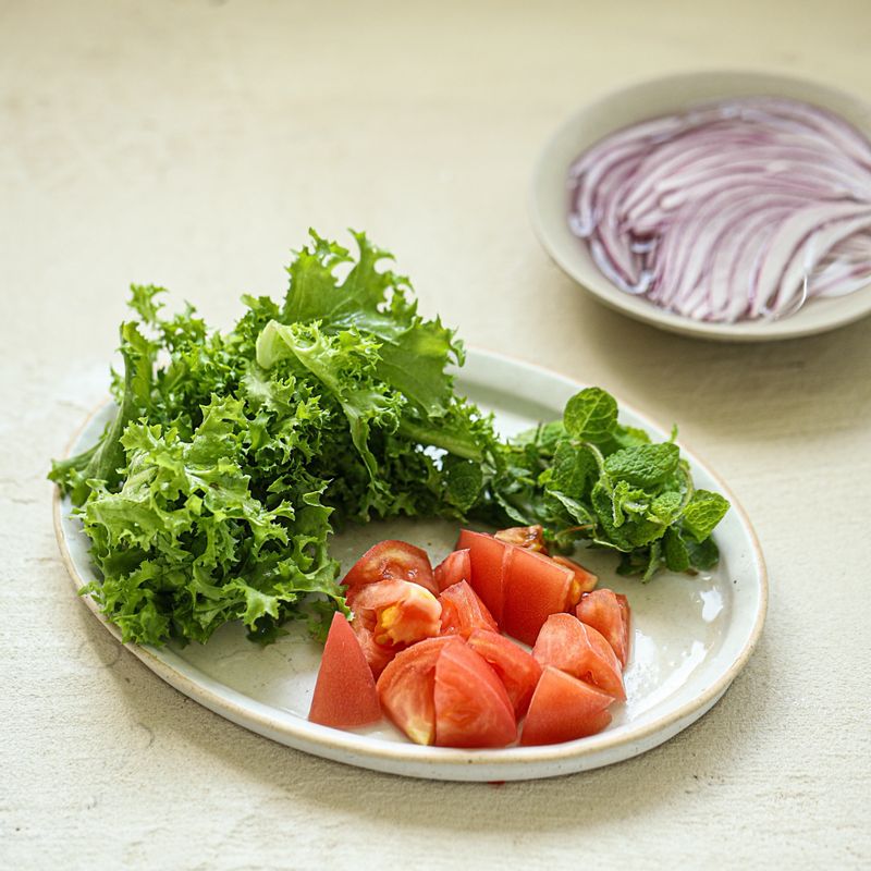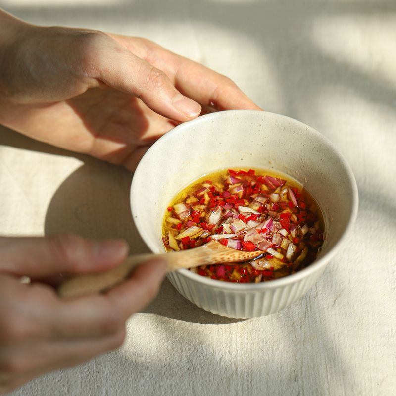 이쯤 되면 불고기는 어떤 외국 요리와도 잘 어울릴 수 있다는 자신감이 생기네요. 채소 위에 불고기를 얹고 마지막으로 태국식 소스를 뿌리면 끝이에요. 피쉬소스, 칠리소스 등을 넣은 드레싱은 마치 방콕 차오프라야강의 한 레스토랑을 연상시키는 맛이군요.