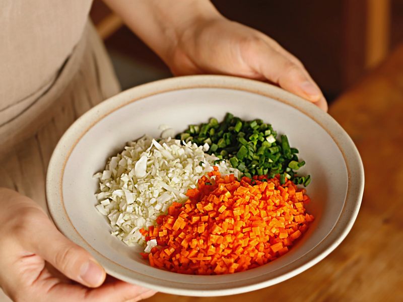 📝TIP 1. 냉장고 속 자리를 차지하고 있던 채소들을 활용해 만들어도 좋아요. 📝TIP 2. 사각 팬을 이용하면 네모 모양 잡기 편해요.