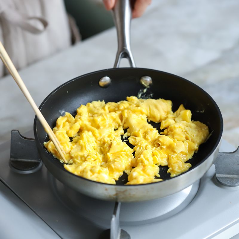 📝TIP 1. 취향에 따라 스크램블 에그의 익히는 정도를 조절해 주세요. 📝TIP 2. 뜨거운 기름에 스크램블 에그를 다시 볶으면 딱딱해질 수 있으니 살짝만 볶아주세요.