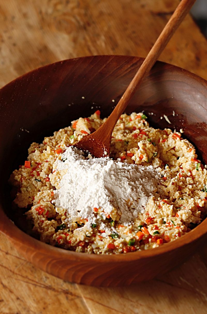 요리조리 아무리 봐도 토스트에 빵이 없어요! 으깬 두부와 달걀에 채소를 넣고 반죽해 빵을 대신하고 그 사이에 치즈를 넣어 노릇하게 부치면 완성이에요. 담백한 두부 사이 느껴지는 고소한 치즈 덕분에 별다른 양념 없이도 맛있게 즐길 수 있답니다!