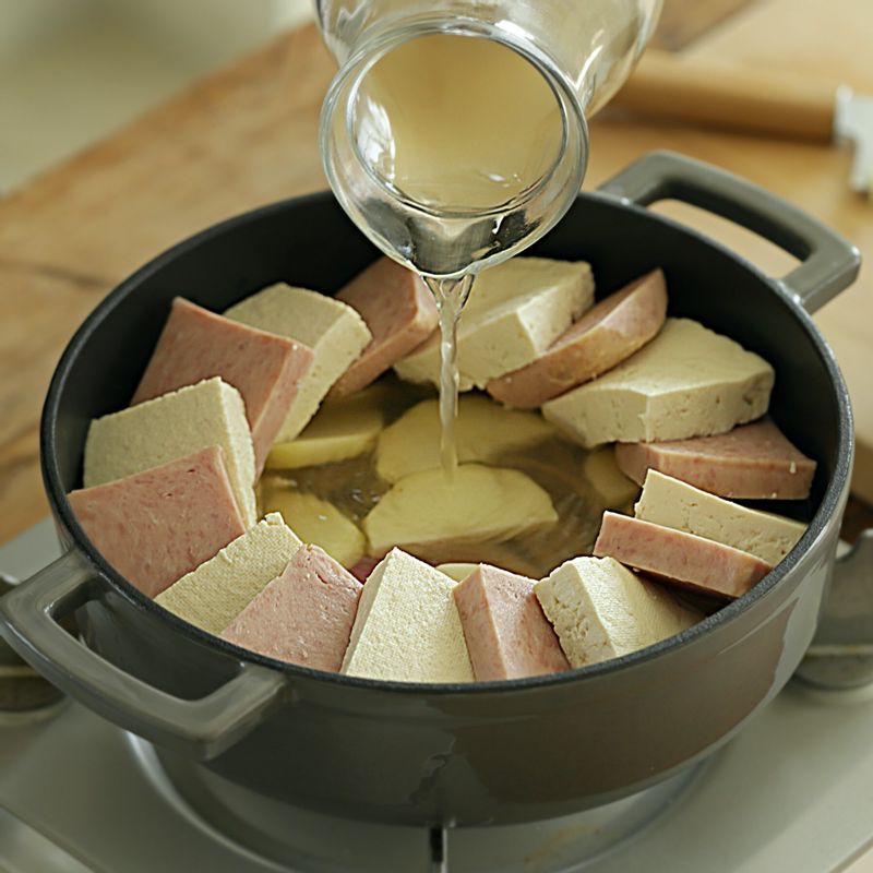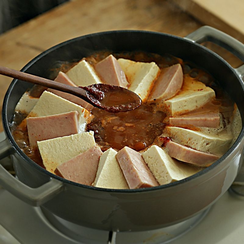 📝TIP 1. 스팸은 끓인 물에 살짝 데친 후 사용해 주시면 첨가물 제거에 좋아요. 📝TIP 2. 끓이는 중간중간 멸치 다시마 육수를 추가해 국물이 자작하도록 조절해 주세요.