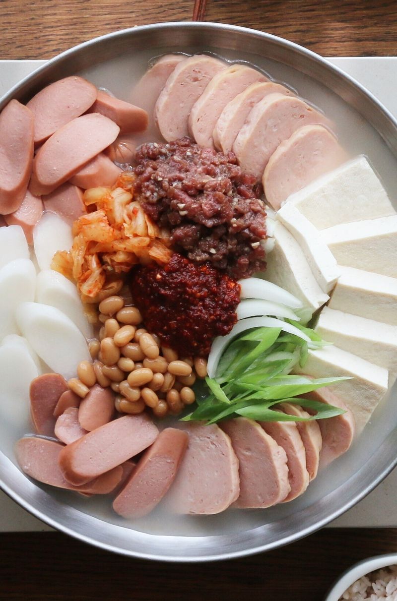 빨간 비주얼에 비해 국물이 맵지 않아 아이들도 즐겨 먹을 수 있어 누구에게나 사랑받는 메뉴예요. 📝TIP 1. 베이크드 빈스가 없다면 생략해도 충분히 맛있어요. 📝TIP 2. 사골육수 대신 멸치육수를 사용하면 좀 더 맑은 국물의 부대찌개를 만들 수 있어요.