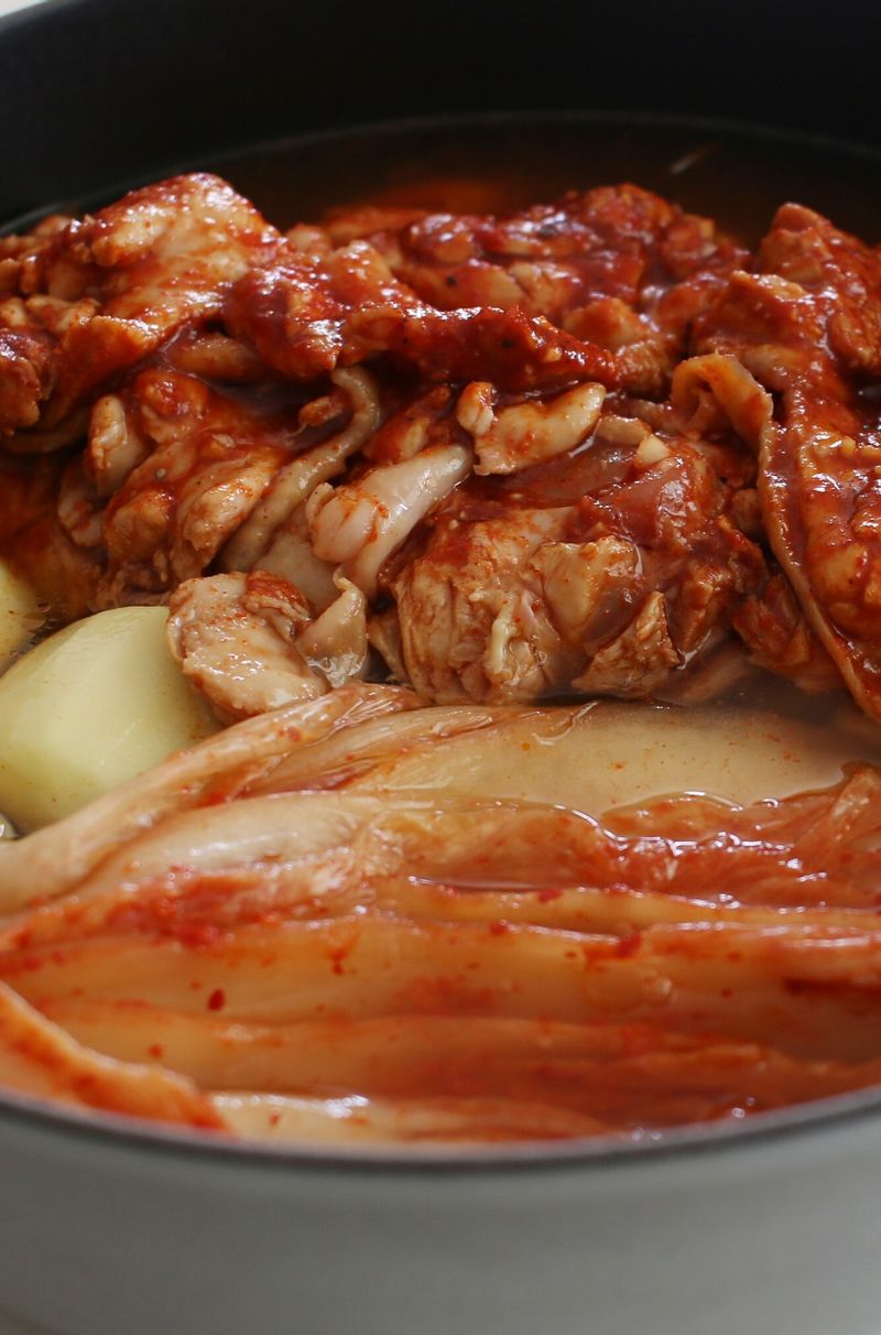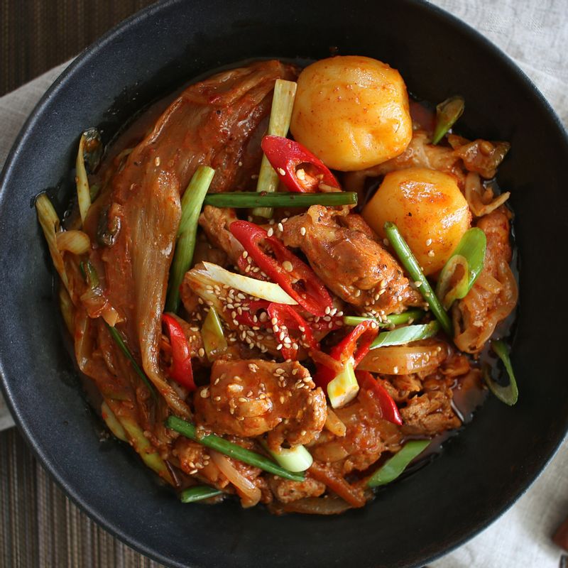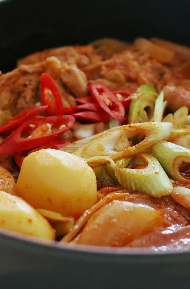 냉장고 속 보물단지인 잘 숙성된 묵은지. 김치찌개를 끓여도 맛있지만, 달달한 닭볶음탕에 묵은지 한 포기를 넣어도 환상적인 맛을 자랑해요. 쫄깃한 닭다리살에 길게 찢은 묵은지를 돌돌 말아 한 입 넣는 상상만 해도 행복해지는 밥도둑 요리랍니다.