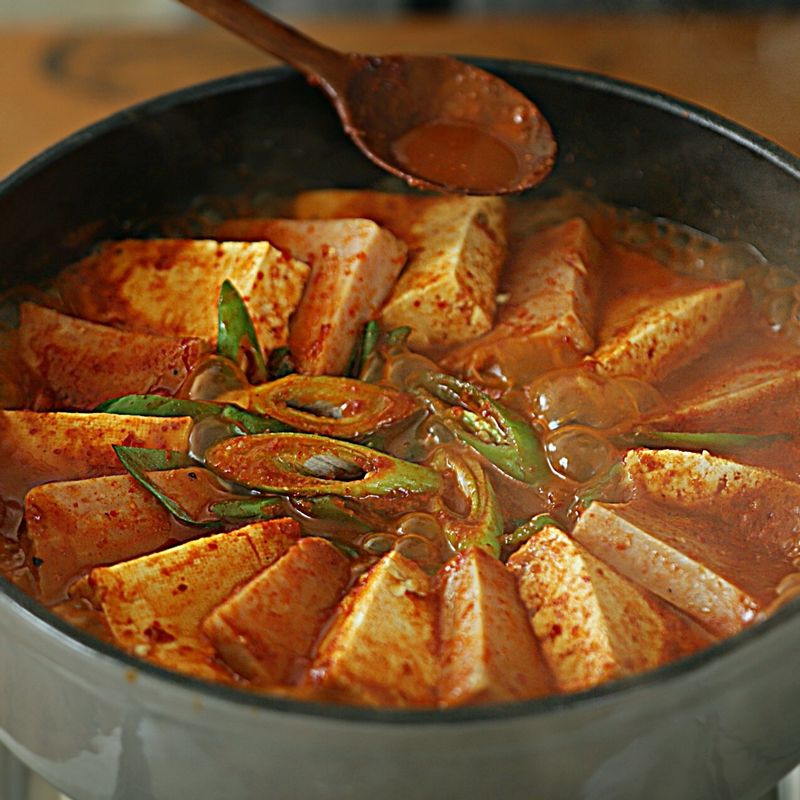 담백한 두부와 짭조름한 스팸의 매콤한 만남! 냉장고 속에 두부만 있다면, 양파와 감자, 대파만 꺼내 휘리릭 양념장을 만들어 보글보글 끓여보세요. 입맛 없는 날에도 먹다 보면 밥 한 그릇이 모자랄 맛이랍니다!