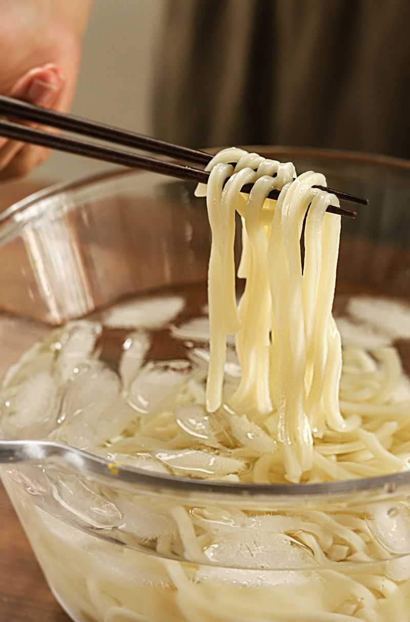 📝TIP 1. 탱글한 우동면 삶는 방법! 우동면을 찬물에 재빠르게 헹군 후 얼음 물에 담가야 면발이 쫄깃하고 쉽게 불지 않아요. 📝TIP 2. 쯔유 국물은 중간중간 간을 보면서 물과 쯔유의 비율을 조절해 주세요.