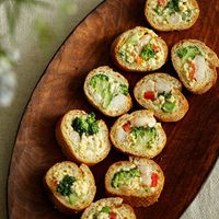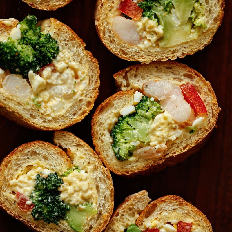 📝TIP 1. 긁어낸 바게트 속은 속재료와 섞어 농도를 맞춰주세요. 📝TIP 2. 바게트를 랩으로 단단하게 말아준 후 썰어주면 속재료가 빠져나가지 않고 깔끔하게 썰려요.