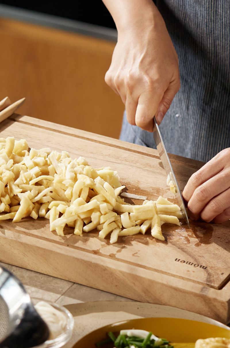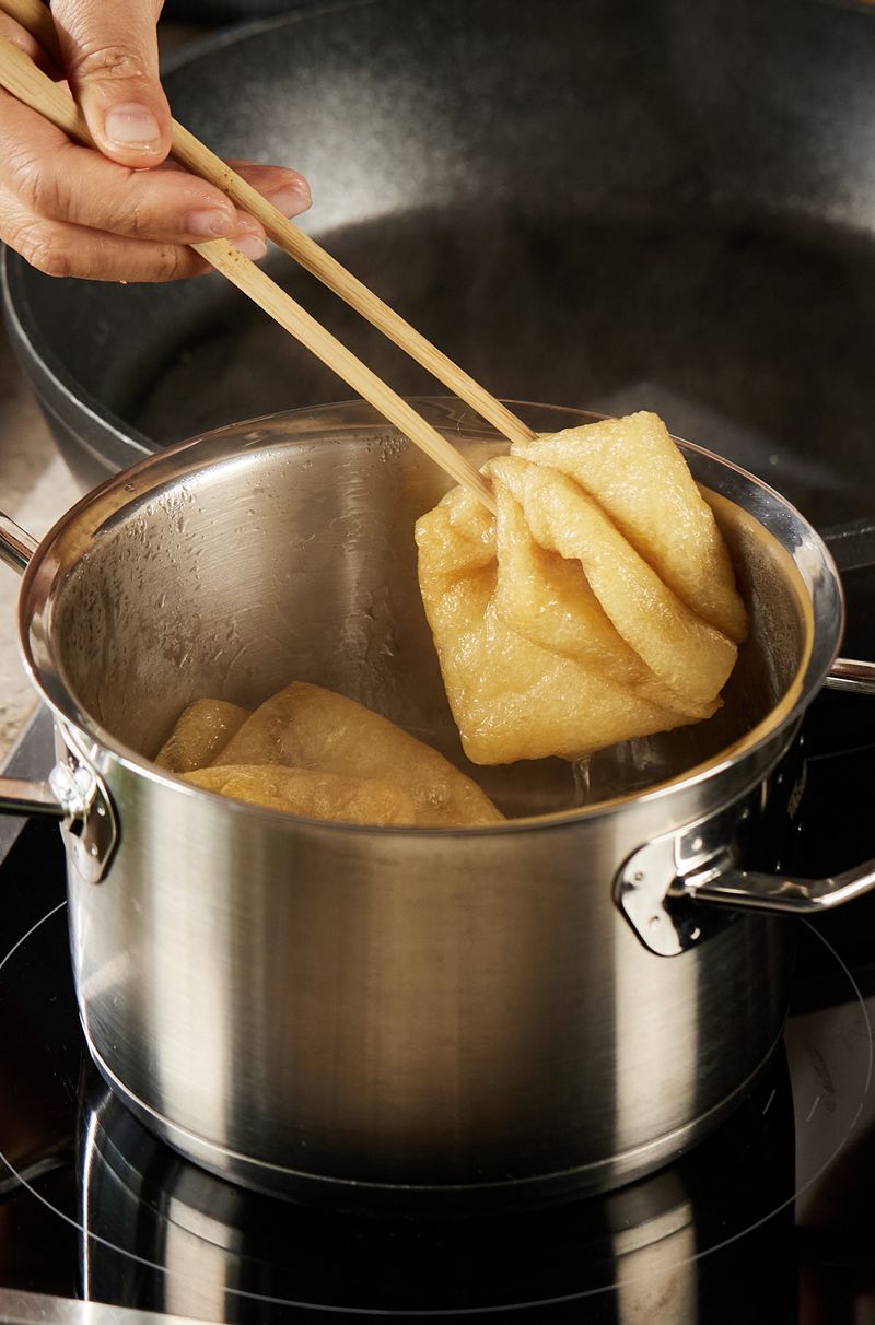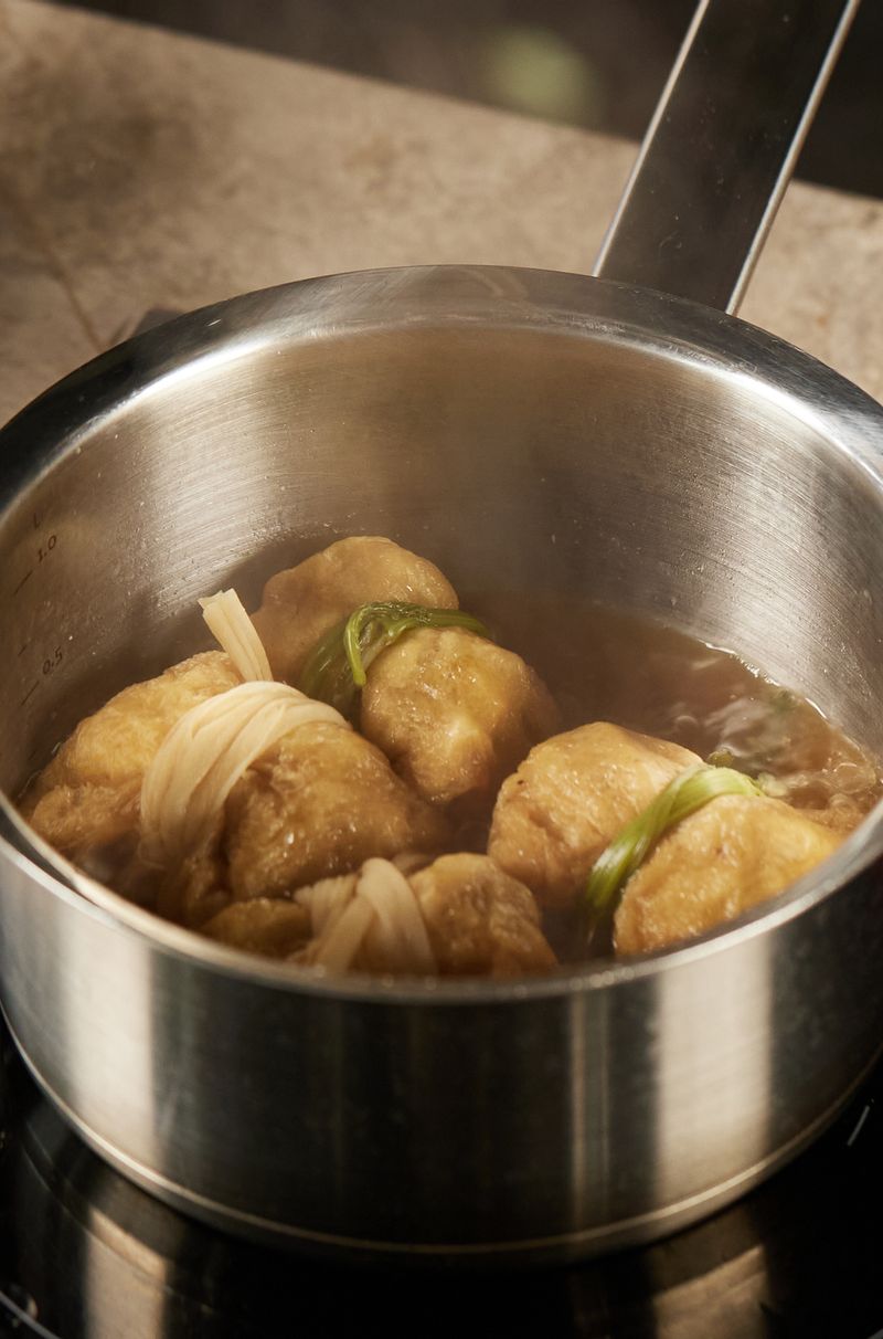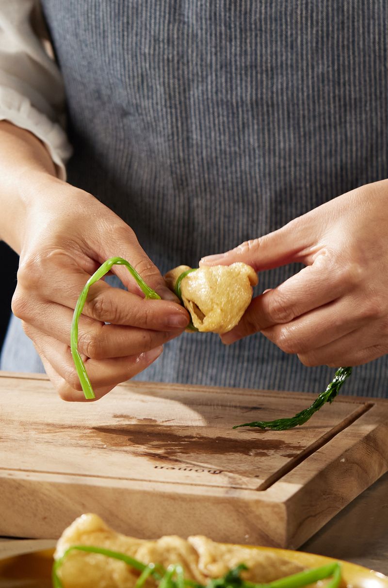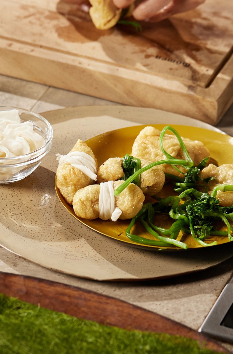 📝TIP 3. 미나리가 없다면 실파, 쑥갓 등으로 대체해도 좋아요. 유부주머니를 묶을 재료가 없다면 꼬지로 고정해도 괜찮아요.