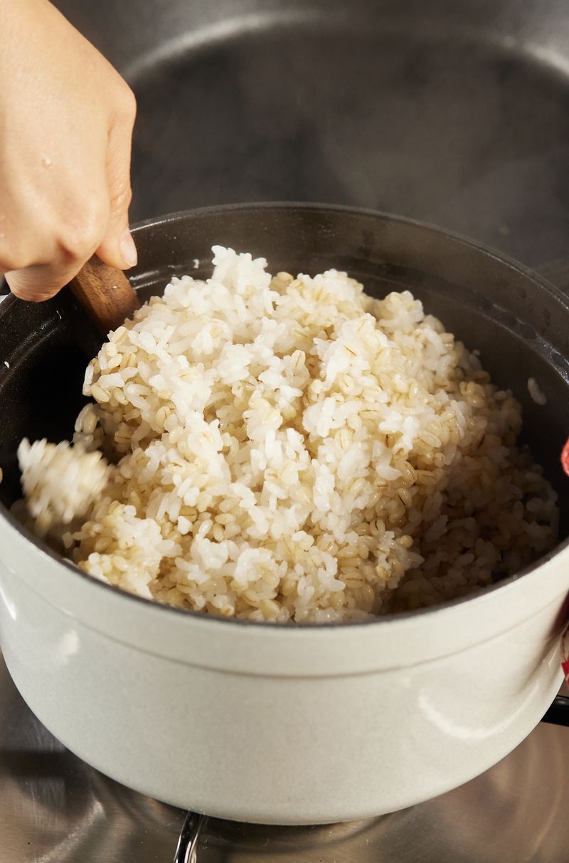 📝TIP 1. 물의 양은 쌀 위로 1.5cm 정도 높이로 올라오면 딱 적당해요. 냄비의 크기나 깊이에 따라 물의 양을 조절해 주세요. 📝TIP 2. 약불에서 12분, 불 끄고 5분 정도 뜸을 들인 후 확인했을 때, 보리가 덜 익었을 경우에는 한 번 섞은 뒤 다시 5분 정도 뜸을 들여 주세요. 📝TIP 3. 보리밥을 감태로 말기 전, 밥을 한 김 식힌 후 사용해야 도시락을 쌌을 때 쉽게 상하지 않아요.