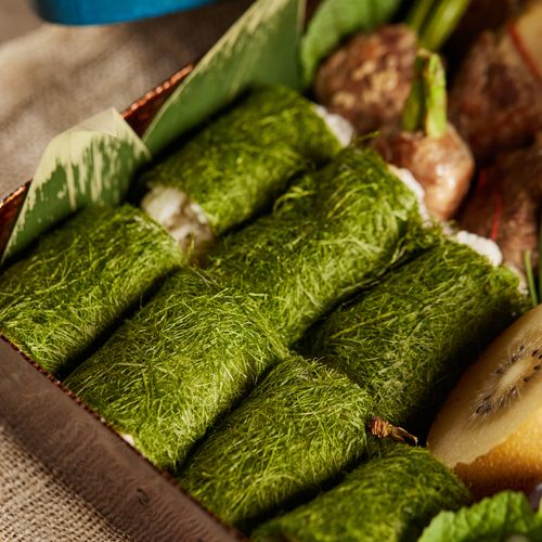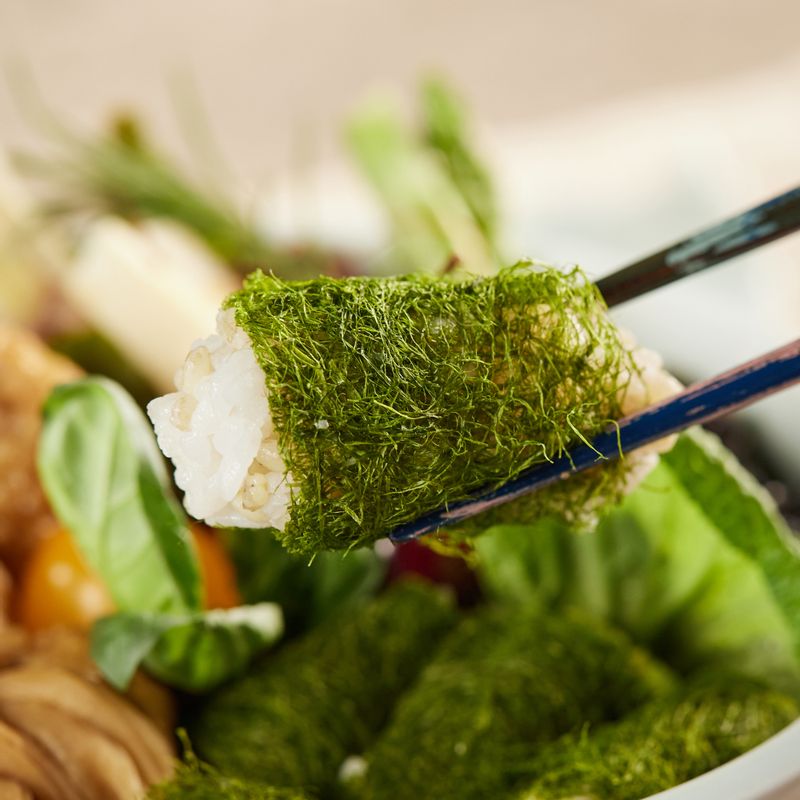 보리를 넣어 구수하고 톡톡 터지는 식감이 좋아 어떤 요리와도 잘 어울리는 보리밥 감태말이. 보리는 식이섬유가 풍부하고 포만감이 오래가기 때문에 식단 관리할 때 많이 찾는답니다. 감태 역시 혈액 순환에 좋아 바다의 약초라고 불리는데, 요리에 곁들이면 맛과 영양을 2배로 만들어주는 식재료예요.