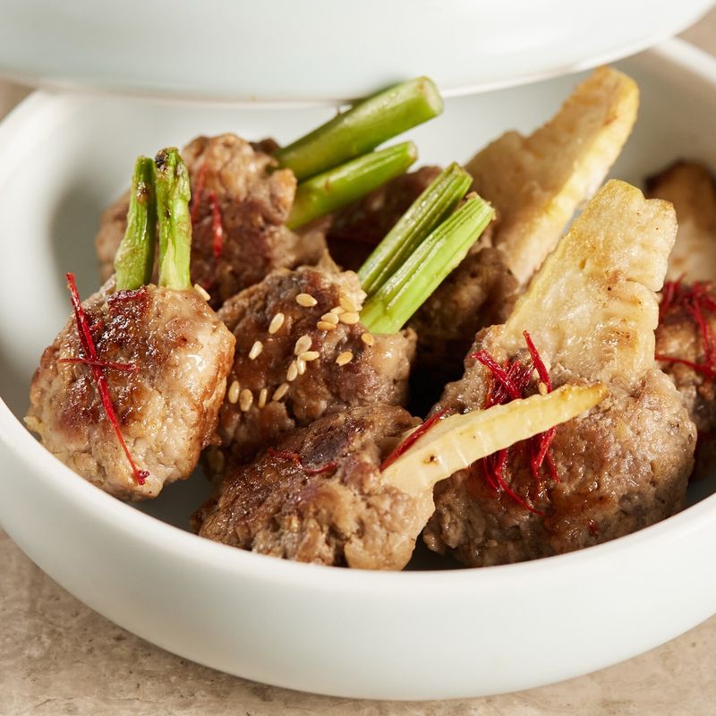 부드럽게 다진 돼지고기 안심을 죽순과 아스파라거스에 동그랗게 말아냈더니, 정성 가득한 비주얼과 맛, 영양까지 완벽하게 갖춘 플레이트가 완성됐어요!