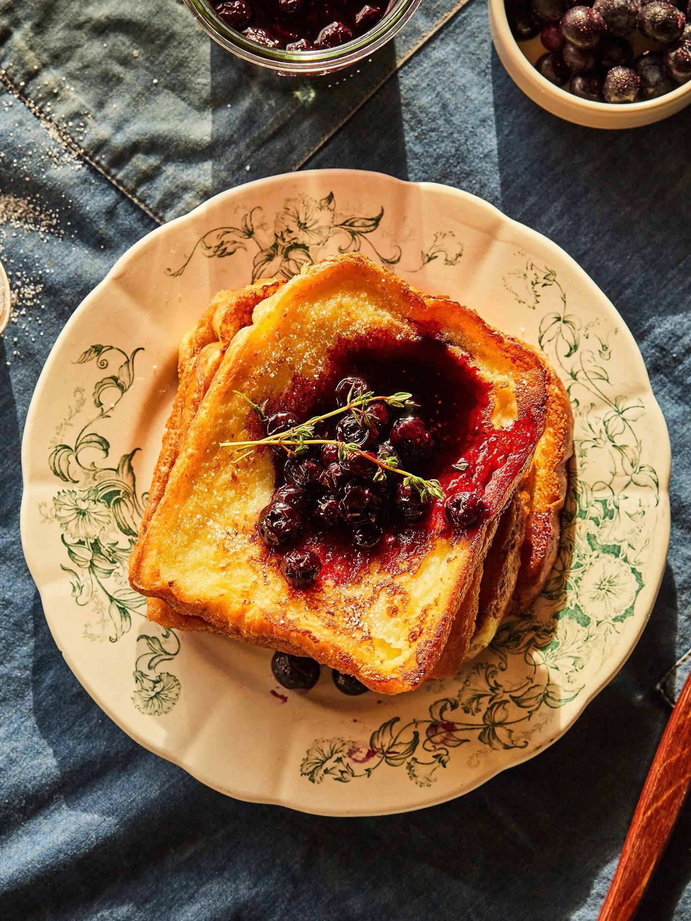 평화로운 주말 낮에 달달한 디저트가 생각나 블루베리 콩포트를 더한 프렌치토스트를 만들어 봤어요. 콩포트는 잼보다 설탕을 적게 넣어 묽은 프랑스식 잼이에요. 고소한 버터 향과 새콤달콤한 콩포트가 정말 잘 어울린답니다.