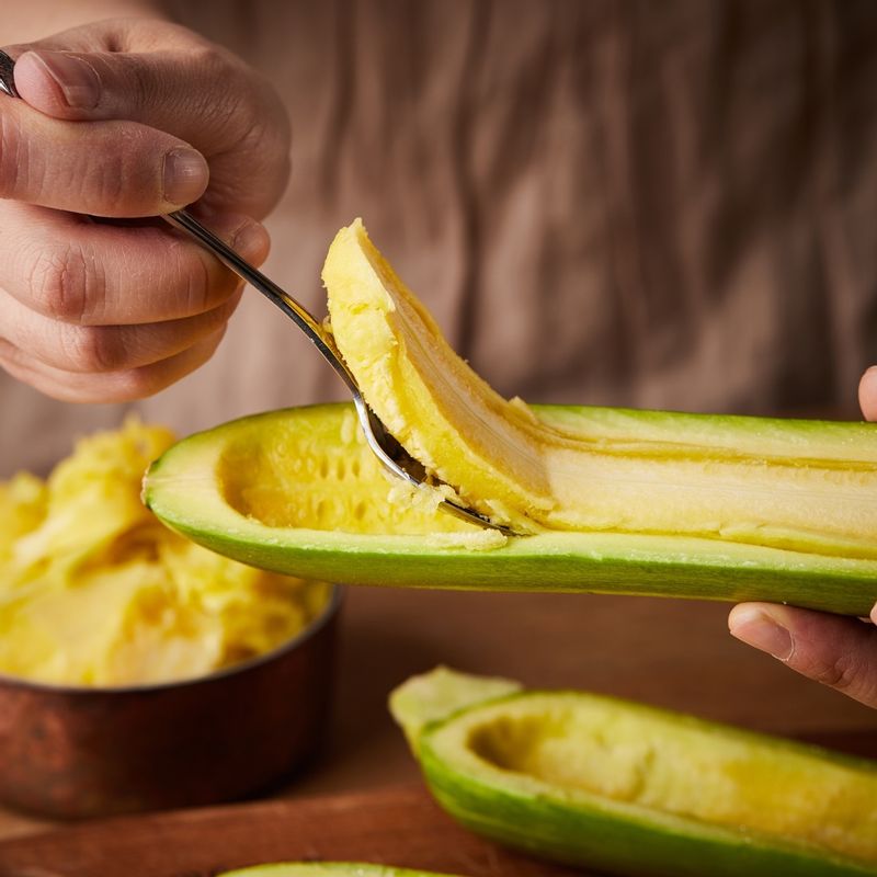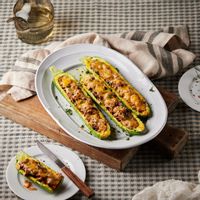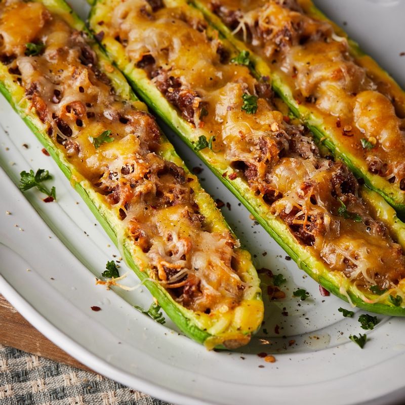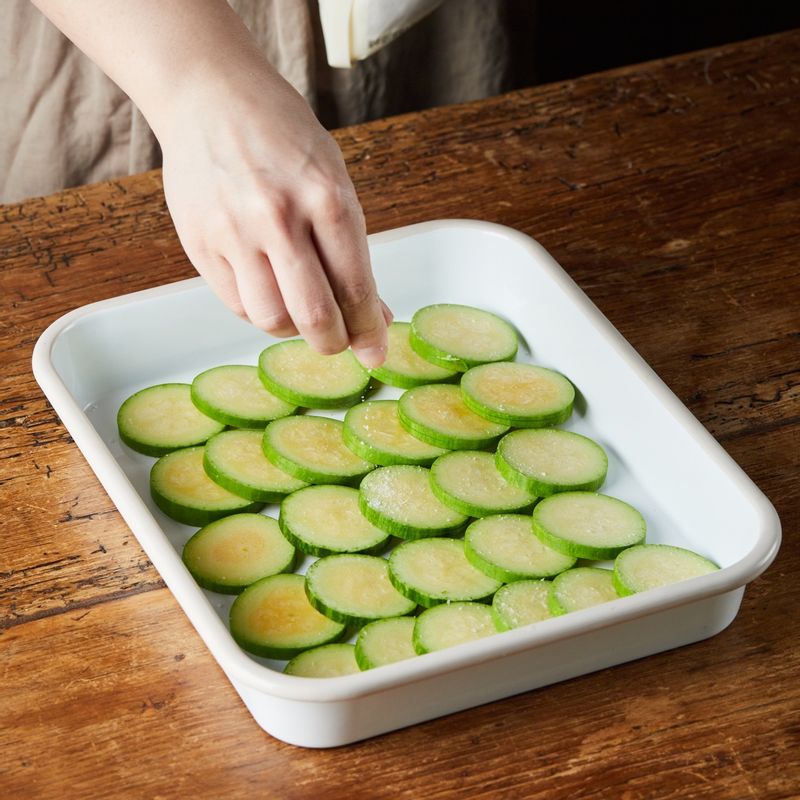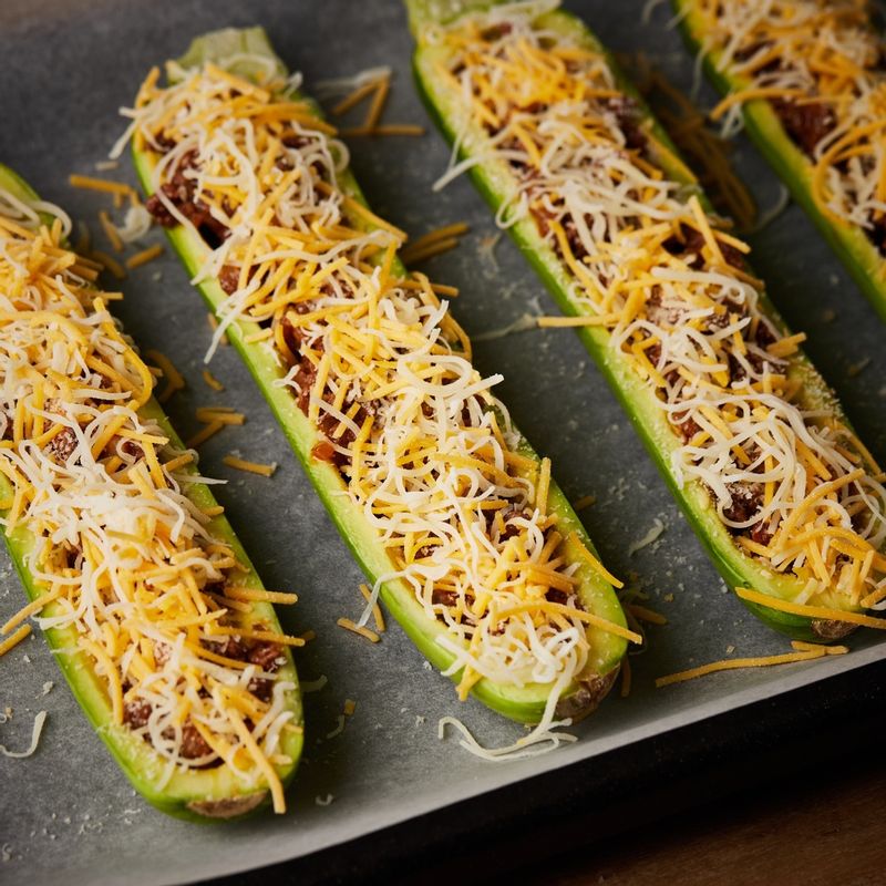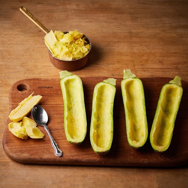 고소한 속재료와 애호박의 은은한 단맛이 정말 잘 어울려 브런치 메뉴로 즐기기 제격이에요. 📝TIP 1. 파낸 애호박 속은 가볍게 으깨 소고기와 함께 볶아 토마토 미트 소스를 만들어도 좋아요. 📝TIP 2. 허브가루 대신 크러쉬드 레드페퍼를 뿌려 매콤하게 마무리해도 맛있어요.