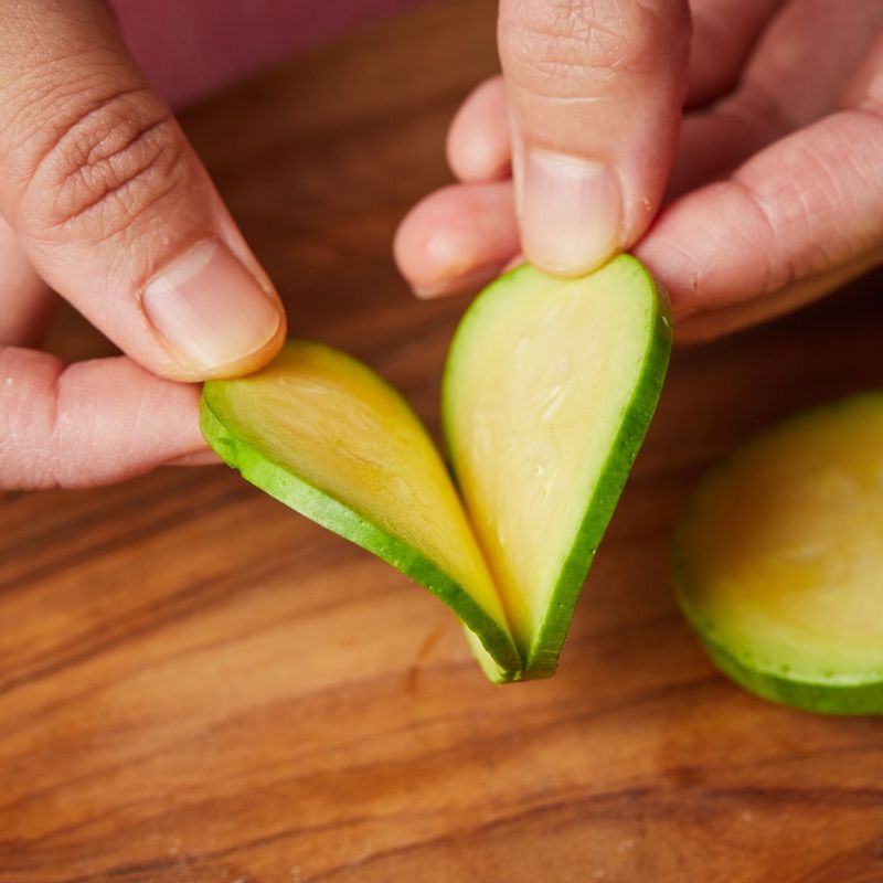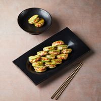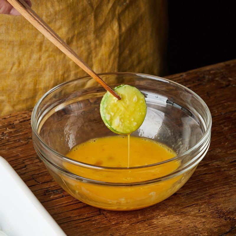 애호박 가운데 칼집을 내 맛살과 다진 채소를 채워 넣어 구워낸 애호박 맛살전! 짭조름한 맛살로 감칠맛을 살리고, 채소까지 듬뿍 넣어 식감과 영양을 둘 다 챙겼어요. 별거 아닌 칼집 하나로 연출한 이색적인 비주얼이 또 다른 매력이랍니다.