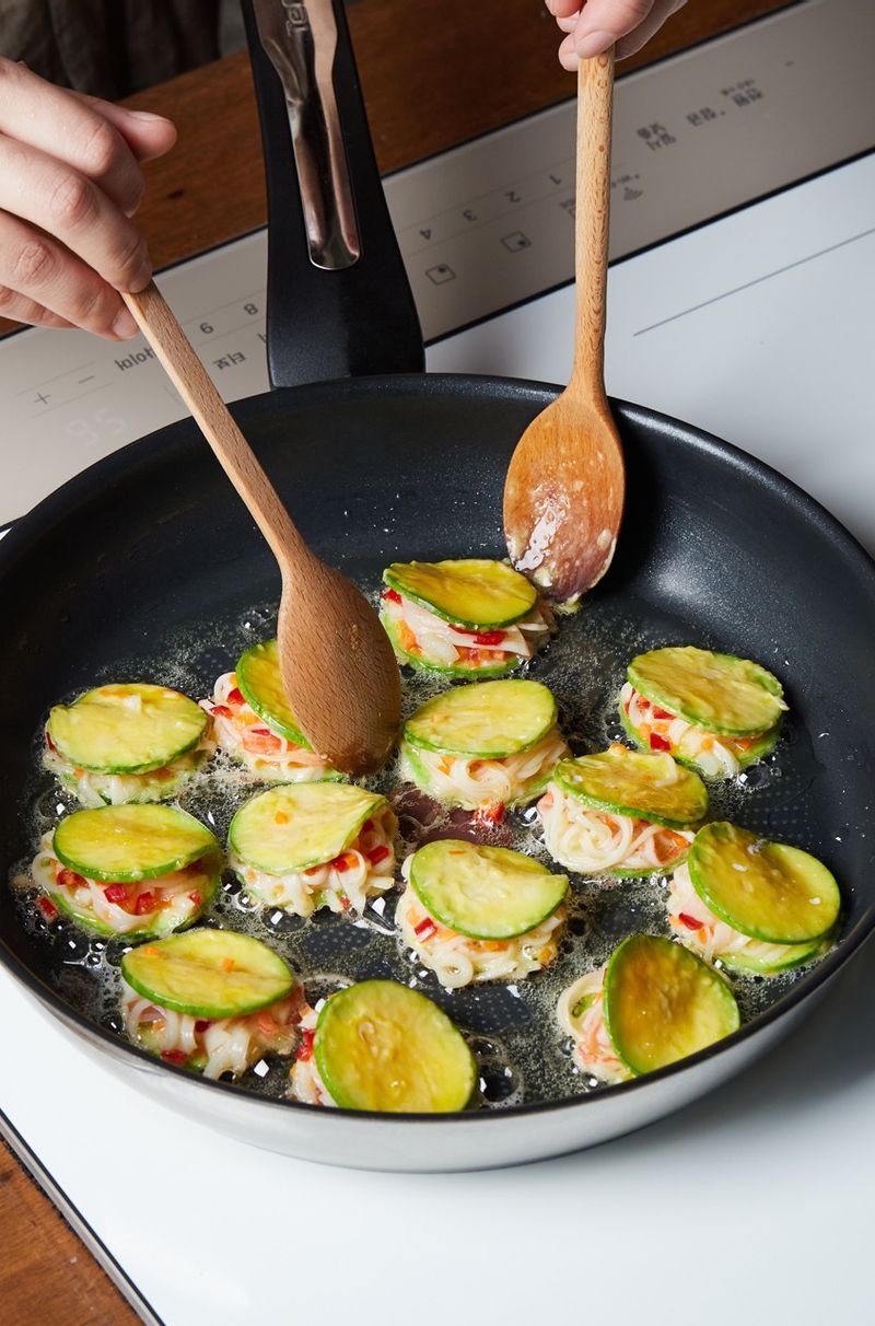 채소 싫어하는 아이들도 한번 먹어보면 무조건 좋아할 맛이라 식탁에 자주 오르는 밥반찬이 될지도 몰라요! 📝TIP 1. 맛살 대신 새우 살을 넣어 만들어도 충분히 맛있답니다. 📝TIP 2. 맛살 소를 많이 넣으면 애호박이 찢어질 수 있으니 1큰술 분량만 넣어주세요.
