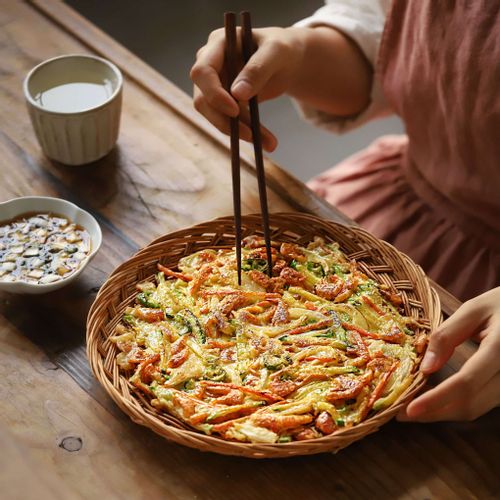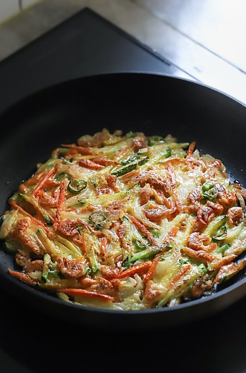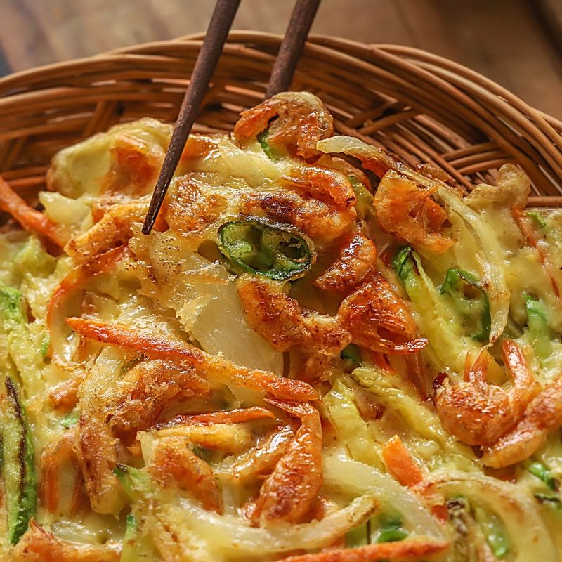 노릇노릇~ 바삭하게 부쳐 뜨거울 때 바로 먹으면 건새우의 고소한 향이 짙어 훨씬 맛있답니다. 📝TIP 1. 취향에 따라 반죽에 오징어나 바지락을 추가해도 좋아요. 📝TIP 2. 반죽은 기름이 충분히 달궈졌을 때 얇게 올려야 바삭하게 구울 수 있어요.