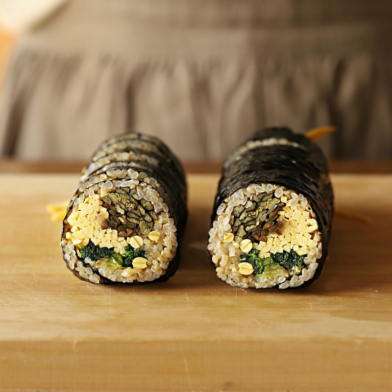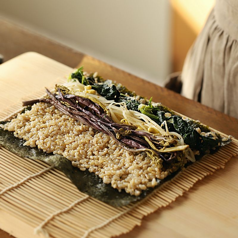 추석이 지난 연휴에 가족들과 함께 돌돌 말아 먹는 재미가 있는 나물 김밥을 만들어 보세요. 📝TIP 1. 나물은 꽉 짜서 물기를 제거해 주세요. 📝TIP 2. 매콤하게 즐기고 싶다면, 현미밥에 고추장을 넣고 섞어 간을 해줘도 좋아요.