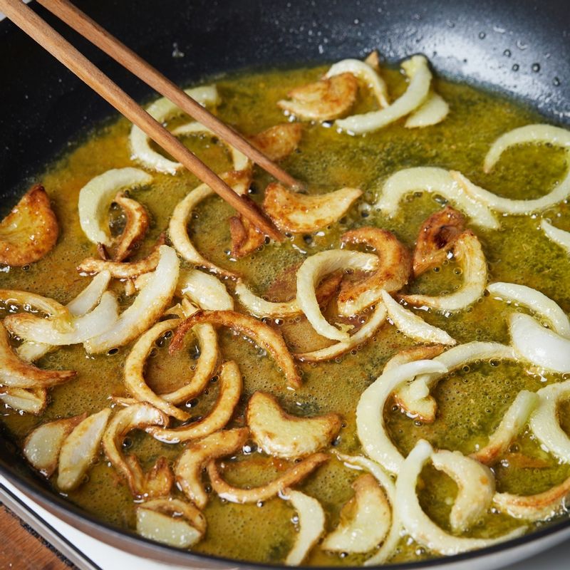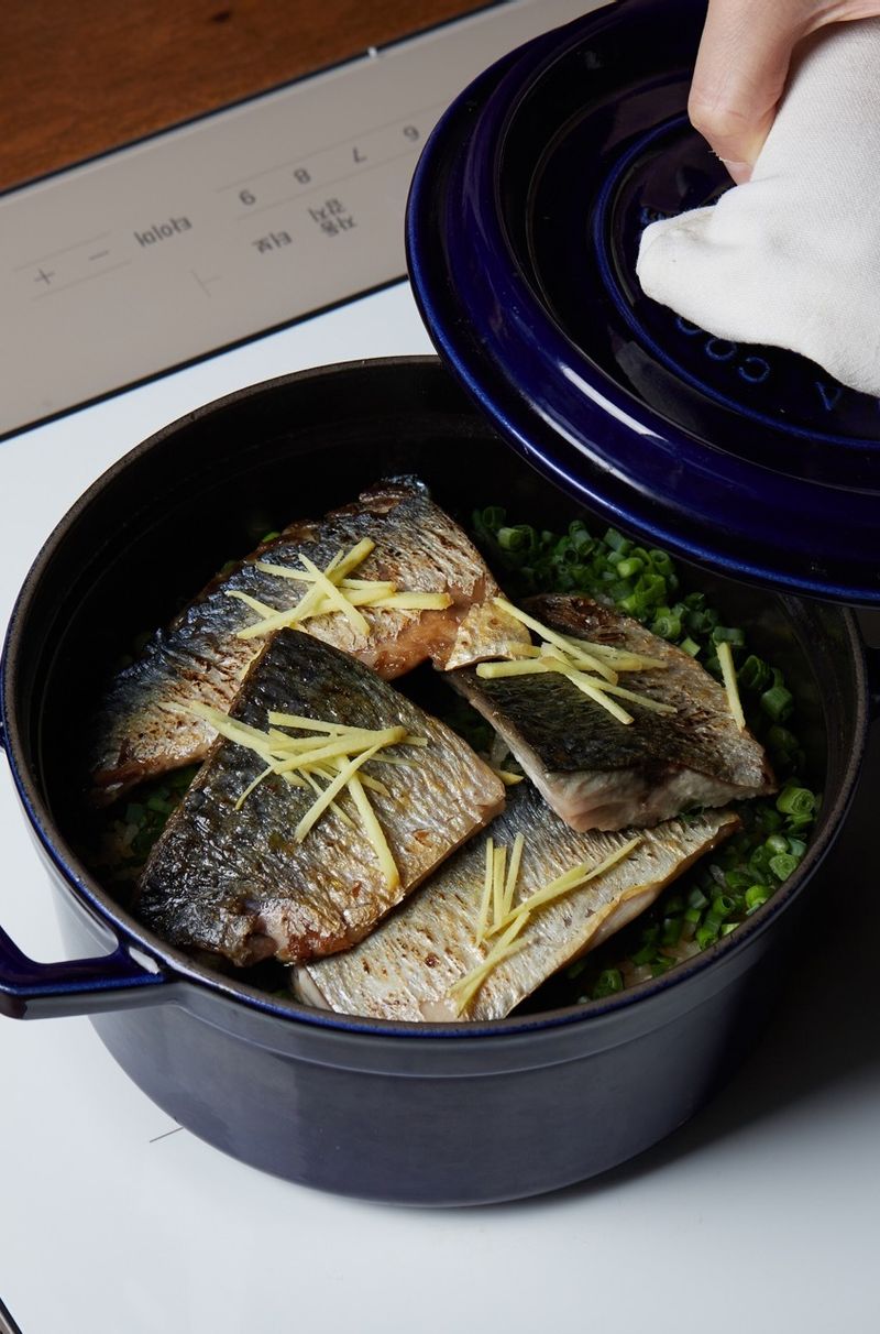 고등어 솥밥의 숨은 포인트는 생강과 튀긴 양파! 고등어의 비린 맛을 깔끔하게 해결해 줘 부담 없이 즐기기 좋아요. 📝TIP 1. 생강은 얇게 채 썰어 준비하고 키친타올에 가볍게 물기를 제거해 주세요. 📝TIP 2. 튀긴 양파 대신 간장에 조린 양파를 올려주면 촉촉하고 짭조롬하게 즐기기 좋아요.