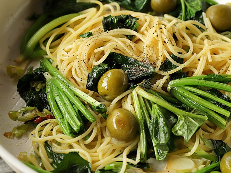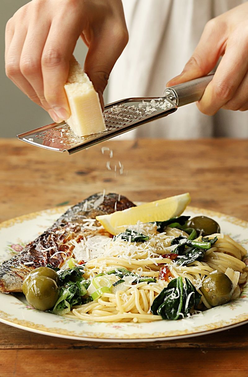 매일 똑같은 단백질 식단이 지겨울 땐, 부담 없이 든든하게 즐길 수 있는 고등어 파스타 추천드려요! 📝TIP 1. 달군 팬에 오일을 약간 두른 후, 고등어의 껍질이 바닥을 향하도록 올려주면 바삭하게 구울 수 있어요. 📝TIP 2. 고소한 고등어와 새콤한 그린 올리브의 조합이 정말 일품이에요. 그린 올리브를 추가해 즐기는 것을 추천드려요!