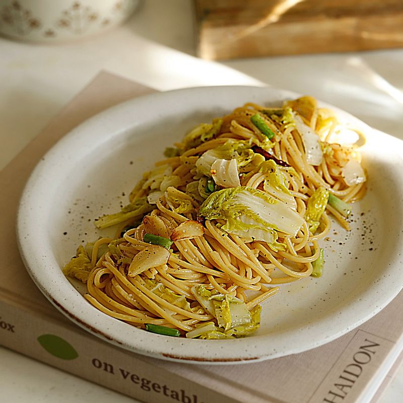알맞게 잘 익은 알배추 하나만 사 오세요! 제철이라 훨씬 아삭하고 달콤한 알배추만 있으면 정말 간단하게 풍미 가득한 파스타를 만들 수 있답니다. 짭조름한 간장과 고소한 들기름으로 누구나 맛있게 즐길 수 있는 파스타 레시피예요.
