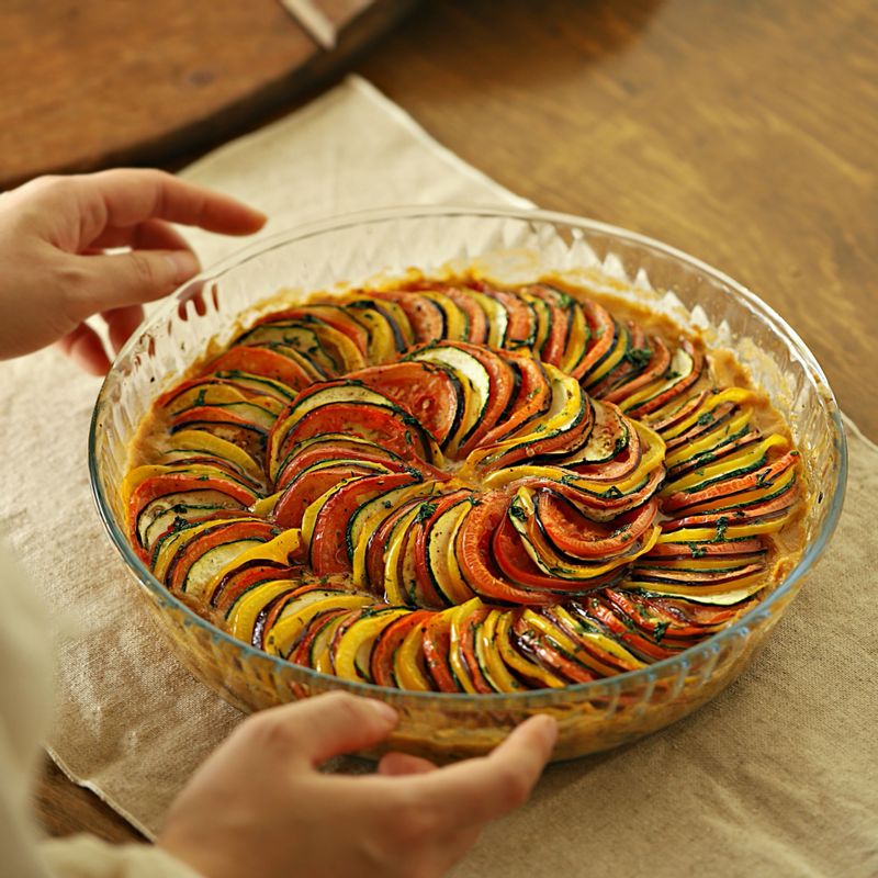 안 어울리는 요리가 없어 부담 없이 내놓기 좋은 라따뚜이! 채소 본연의 맛과 색감을 멋스럽게 즐길 수 있어 집들이 요리에 제격이에요. 소박하지만 오븐에서 오래 구워낸 만큼 깊은 맛이 느껴져 따뜻하게 즐기기 좋은 요리랍니다.