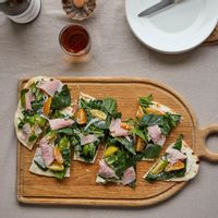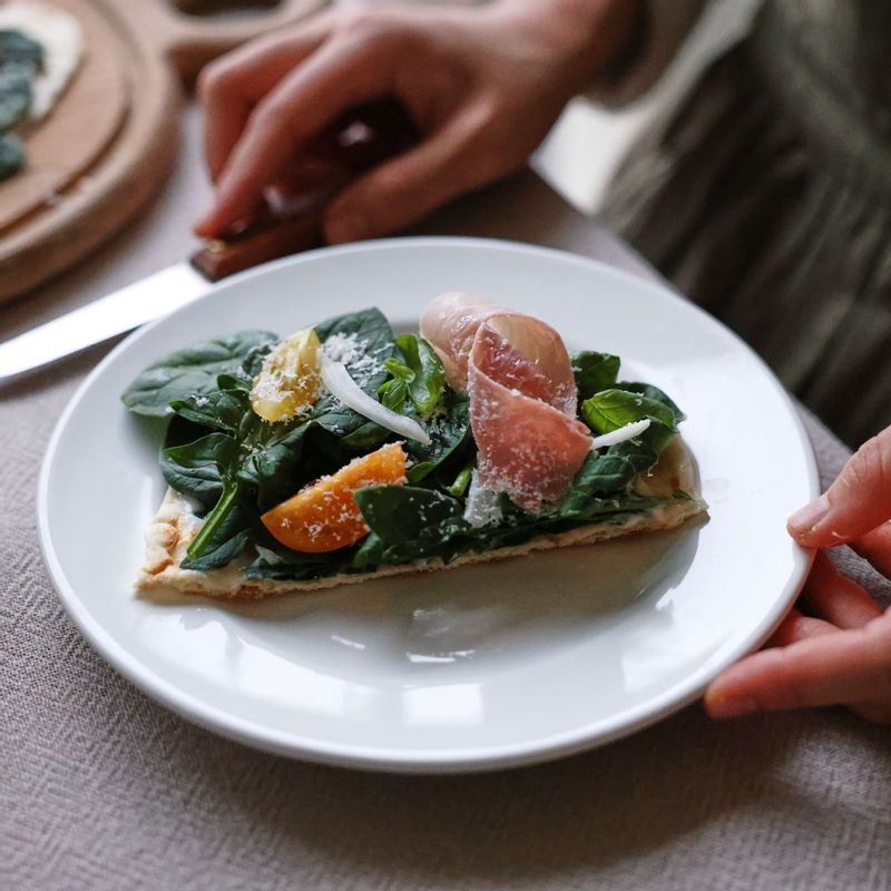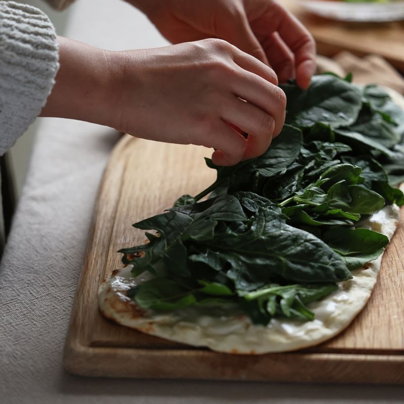 시금치 플랫브레드는 얇은 빵 위에 화이트 소스와 시금치와 햄을 듬뿍 올려 먹는 요리예요. 건강한 브런치를 즐기고 싶은 날에는 이만한 게 없어요! 추워지는 날씨에 시금치는 씁쓸한 맛이 덜하고 질기지 않아 생으로 먹어도 맛있답니다.