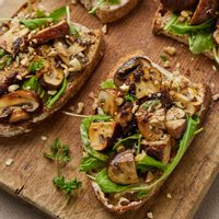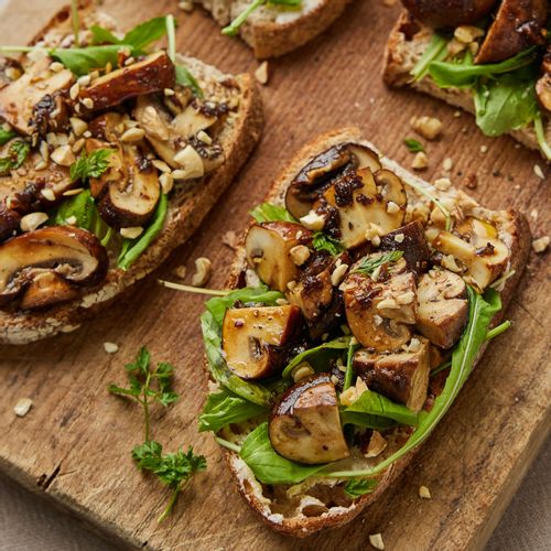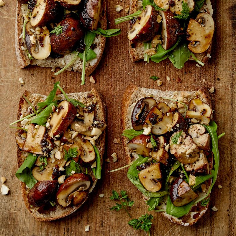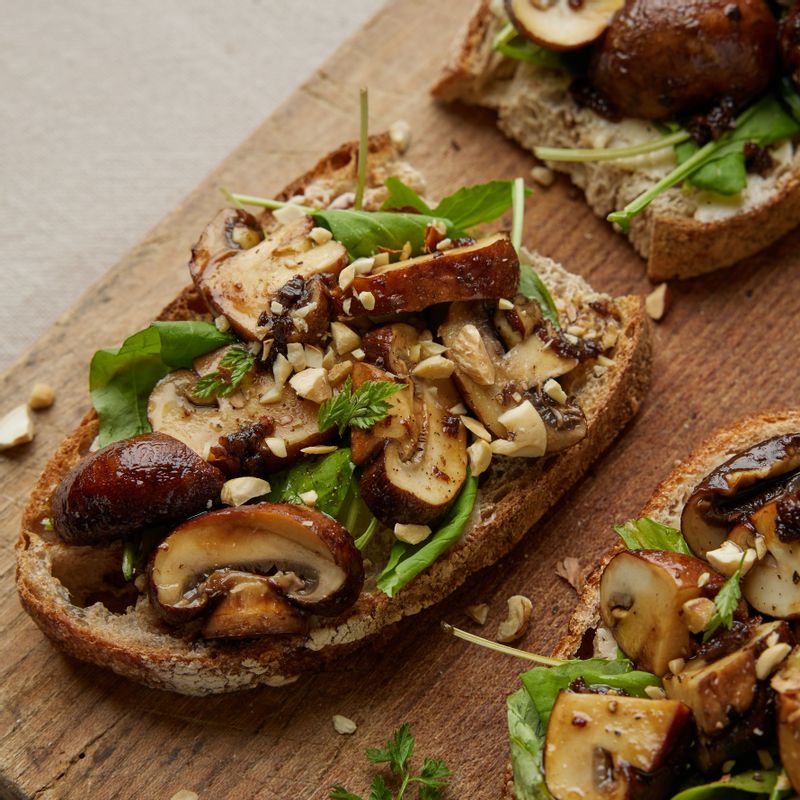 담백한 통밀빵 위에 양송이버섯을 얹은 오픈 샌드위치! 다진 견과류도 함께 곁들여 바삭한 식감으로 즐길 수 있도록 완성했어요. 버섯볶음과는 또 다른 버섯의 매력을 느껴보실 수 있을 거예요.