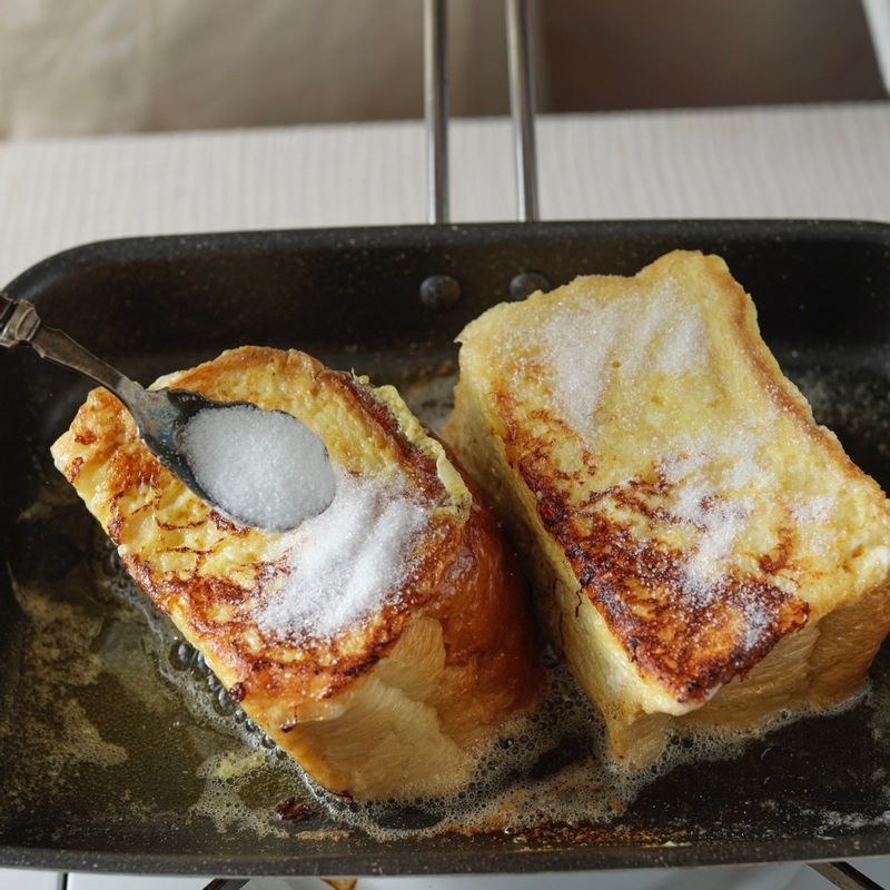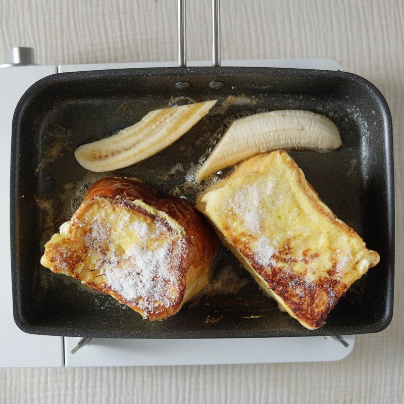 요 레시피의 포인트는 한 번 구워내 풍미를 살린 바나나! 극강의 달콤함을 원하는 날 꼭 만들어 보세요. 📝TIP 1. 통식빵이 없다면 슬라이스 식빵 2-3장을 겹쳐 만들어도 괜찮아요. 📝TIP 2. 자른 통식빵 속까지 달걀물이 잘 스며들도록 5분 정도 기다려주시는 것이 좋아요.