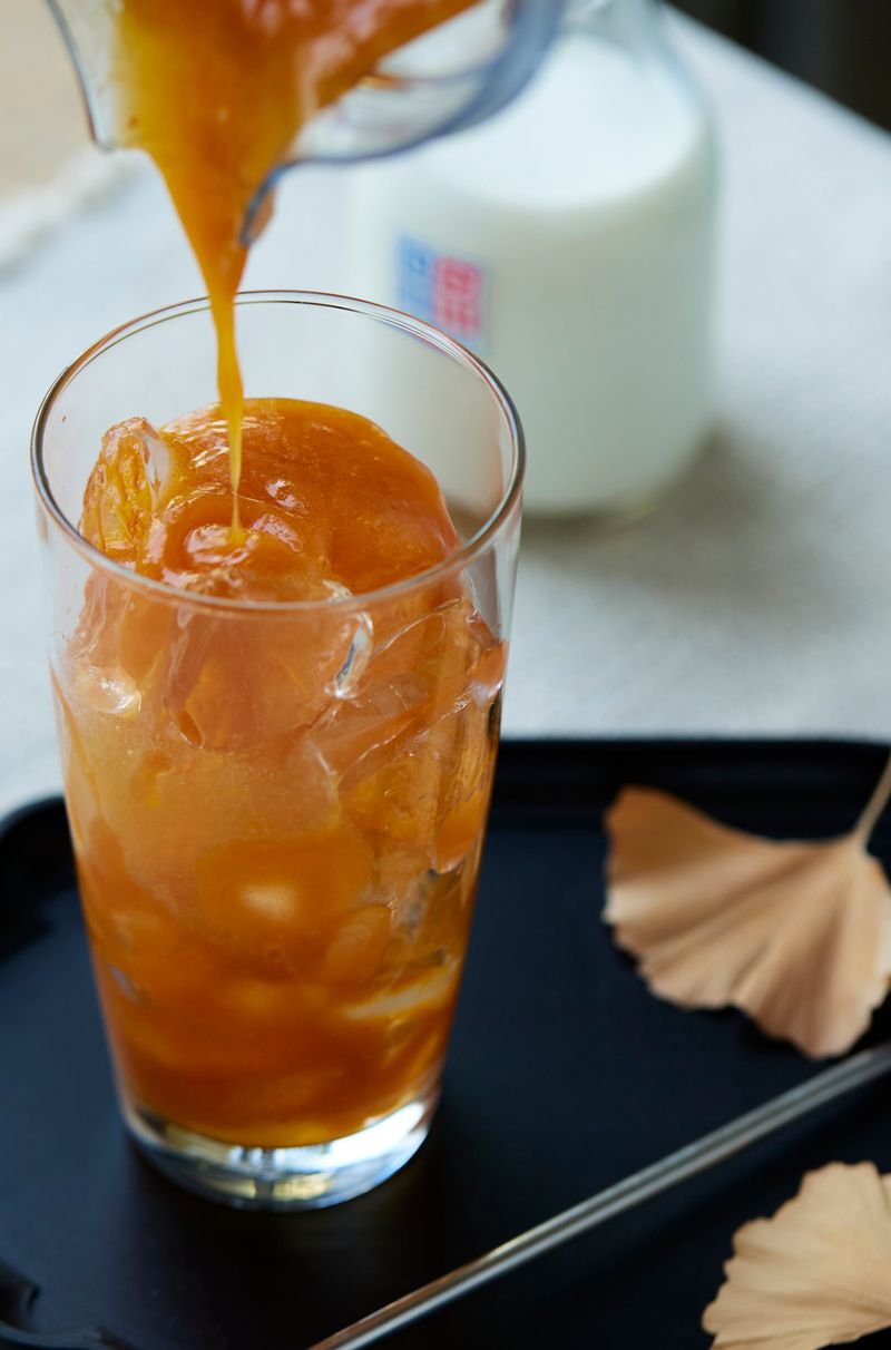 달콤하고 부드러운 홍시를 시원한 우유에 퐁당! 홍시 아이스 라떼 한 잔이면 가을의 맛을 한가득 느낄 수 있어 이맘때 꼭 마셔줘야 한답니다. 홍시가 진한 주홍빛을 띠며 알맞게 익기를 기다렸다가 한번 만들어 보세요.