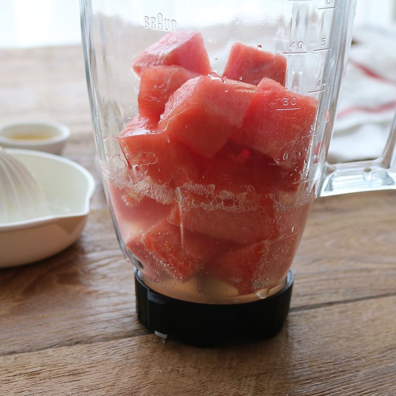 혹시 수박 자르다가 모서리에 남은 수박이 있나요? 야무지게 긁어내서 수박 에이드, 주스 등으로 활용하면 좋아요. (꿀Tip..)