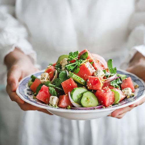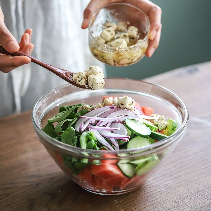어? 수박 계획서 잘 따라오고 계시죠? 계획서만 잘 따라오면 수박 1통을 알뜰하게 즐기기엔 문제없어요. 마지막 레시피는 지중해 느낌 물씬 나는 수박 페타치즈 샐러드예요. 짭짤한 페타치즈와 달콤한 수박의 단짠 콜라보가 시작됩니다.