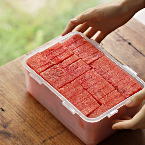 #수박자르는꿀팁 수박 이제 쉽게 자르세요! (글 말고 영상을 보시는 걸 추천해요) 1. 깨끗이 씻은 수박을 위, 아랫부분이 평평하도록 잘라주세요. 2. 수박을 반으로 자른 후 사방을 잘라 정사각형으로 만들어 주세요. 3. 모서리에 남은 수박 껍질을 도려내 주세요. 4. 보관할 용기 크기에 맞게 수박을 자르면 완성!