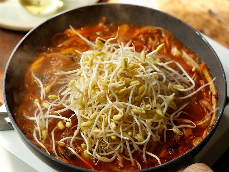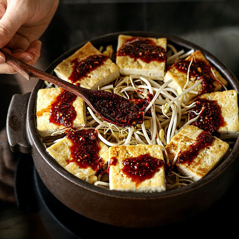 냉장고를 열어보면 먹다 남은 콩나물과 두부가 있어요. 두 가지 기본 식재료만으로 뚝딱! 손쉽게 만드는 집밥 요리, 콩나물 두부조림 어떠세요? 빨간 비주얼의 두부조림에 시원~한 콩나물을 더해 훨씬 맛이 좋답니다!